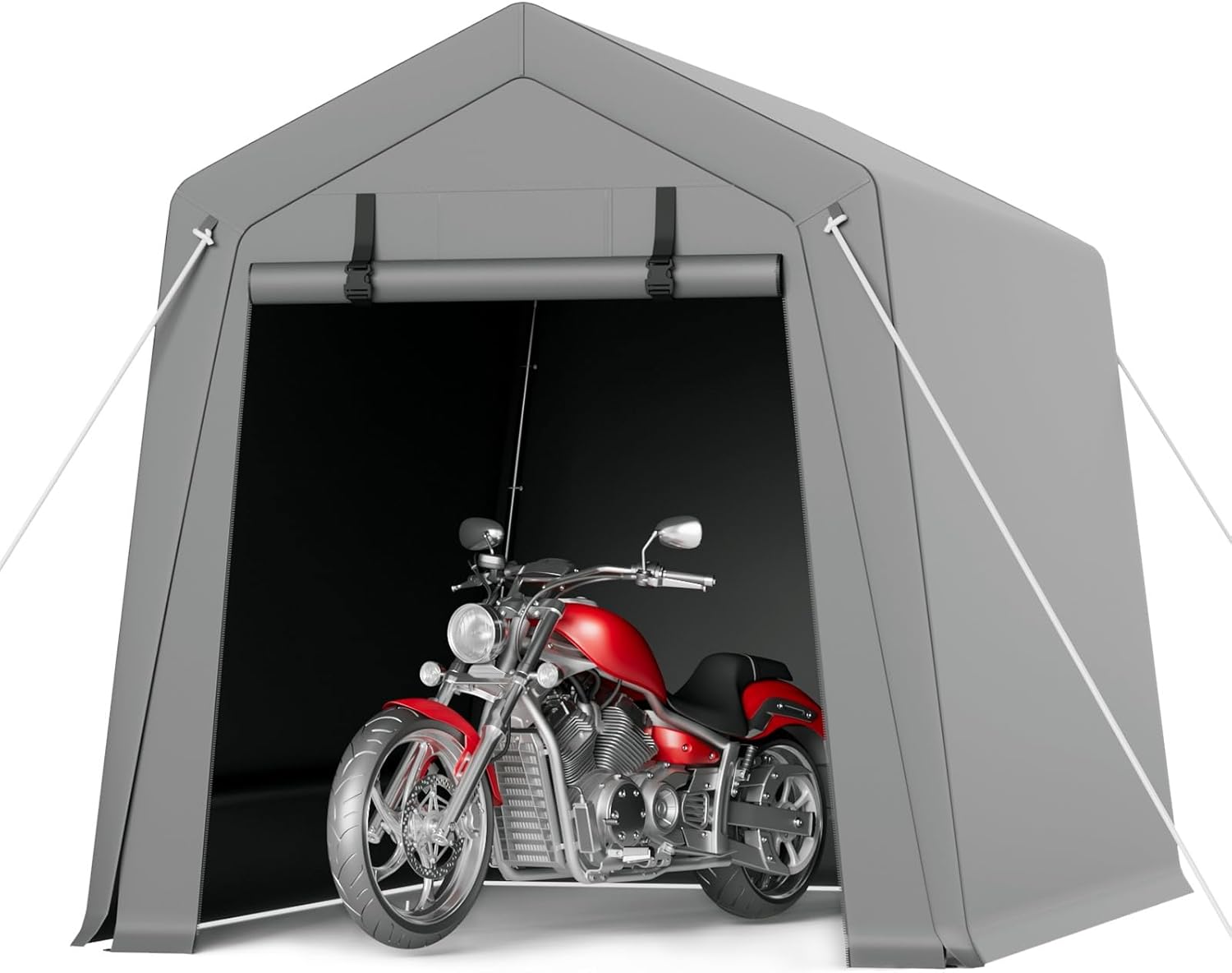 6 x 8 ft Carport Storage Shed, Portable Garage with Roll-up Zipper Door, Heavy Duty Waterproof Tarp, Storage for Motorcycle, Bike, Firewood, Garden Tools