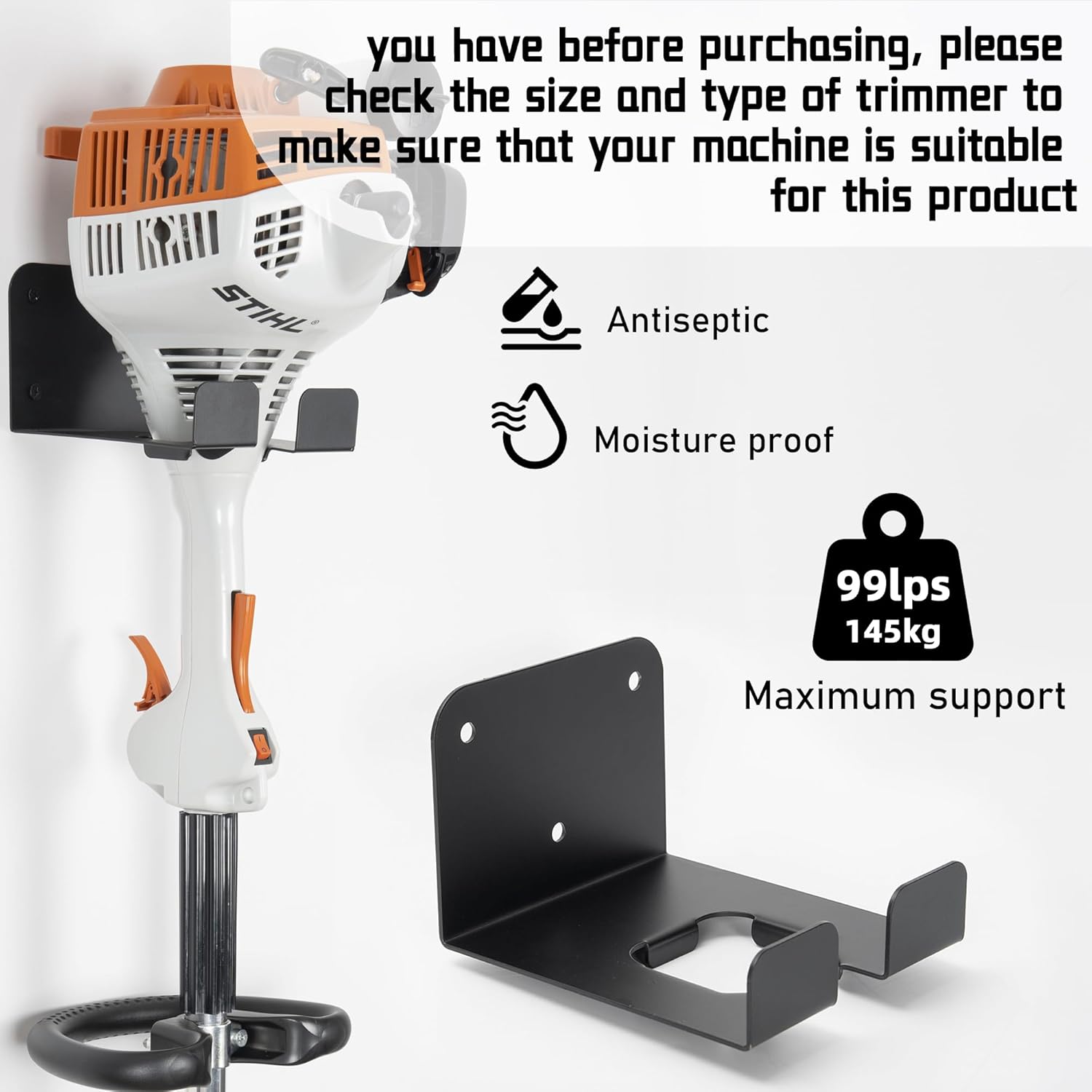 - 【Organize & Space-saving Solution】The wall-mount design allows you to easily store and retrieve the tool in a few seconds, optimizing your garage or workshop space, providing efficient storage and display of your tools without cluttering your work area. It also helps you to protect your trimmer for unexpected falls and impacts, effectively preventing scratches on your hanging items and ensuring your tools remain in pristine condition.