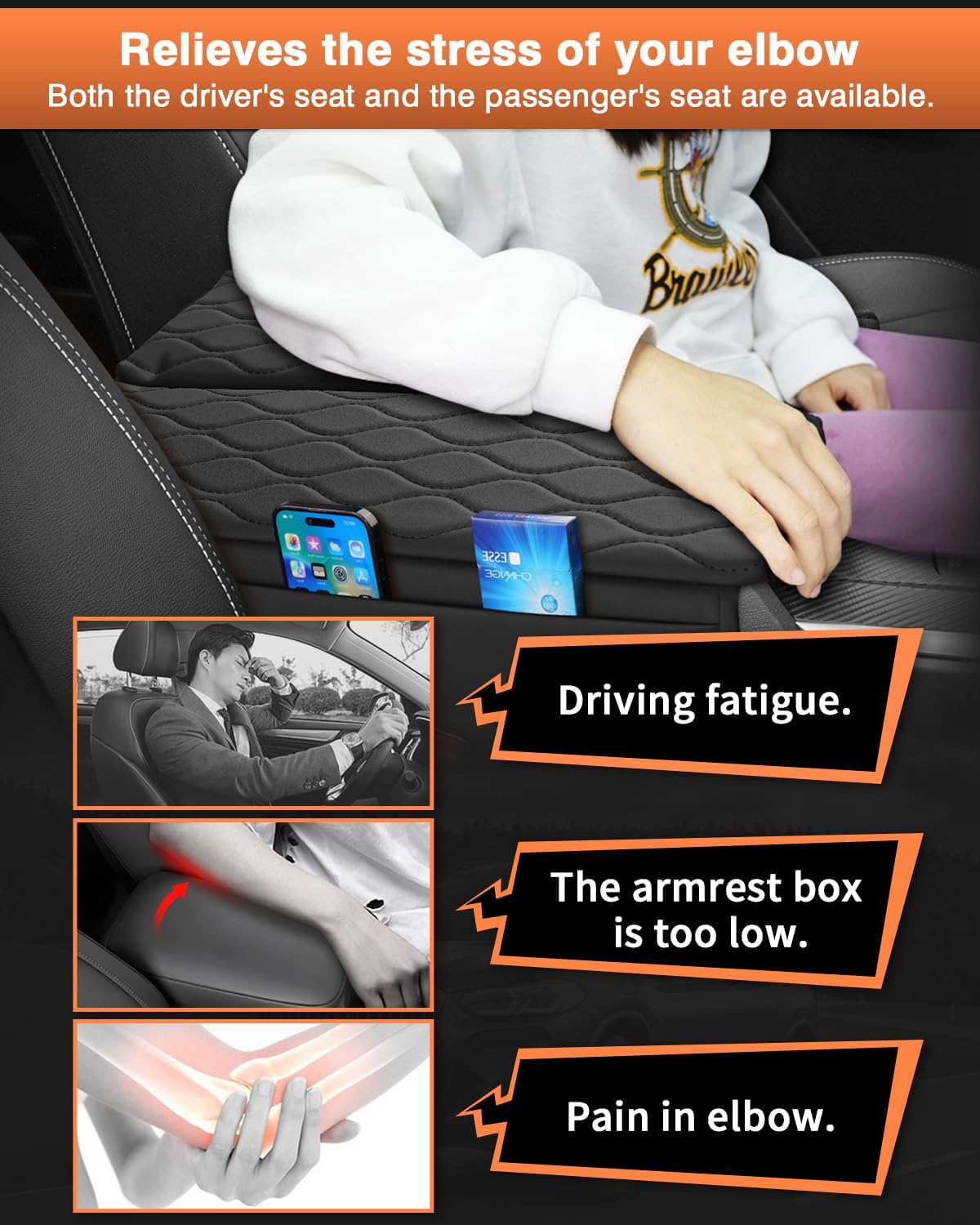 - 【2025 Thickened Sponge Design】 Shademax 2025 Mazda CX90 center console cover has a thicker sponge than normal armrest pads, which can reduce elbow pressure to a greater extent and relieve fatigue during driving. The Mazda CX-90 armrest cushion pad with softer design relieve stress off your elbow while driving and keeps your elbow away from bumps, enhances your armrest comfort.