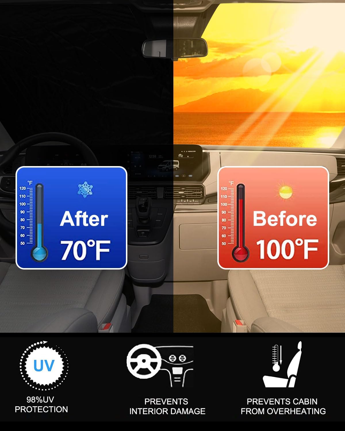 - 【KEEP COOL】Ford Transit window shade will keep the interior of your vehicle cool. Having it can keep your car's steering wheel and interior surfaces much cooler on hot summer days.