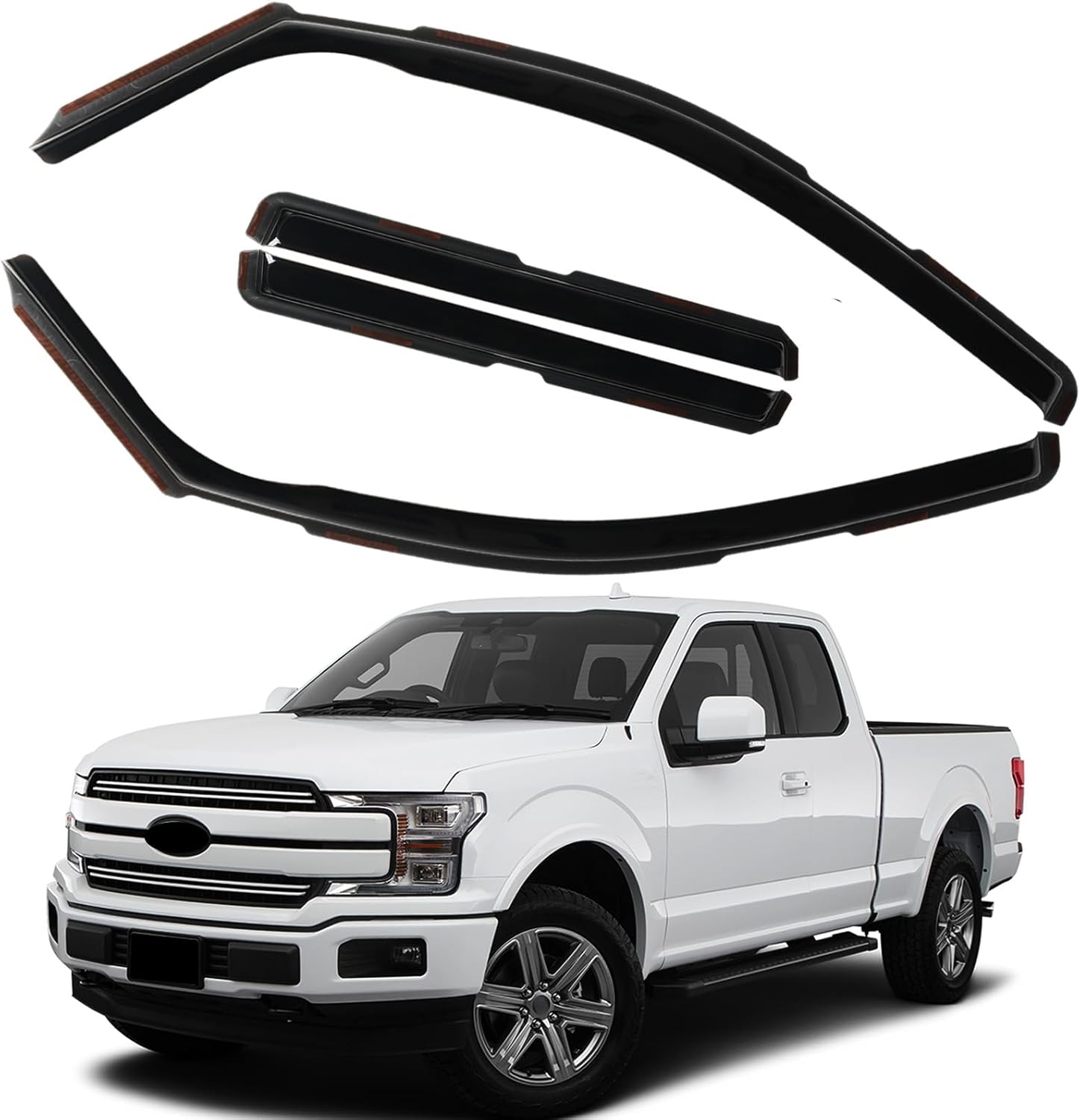 in Channel Rain Guards Fit for 2015-2020 Ford F150 Super Cab, 17-20 F150 Raptor, 2017-2023 F250 F350 F450 F550 Extended Cab Window Wind Deflectors, Vent Window Visors Shades