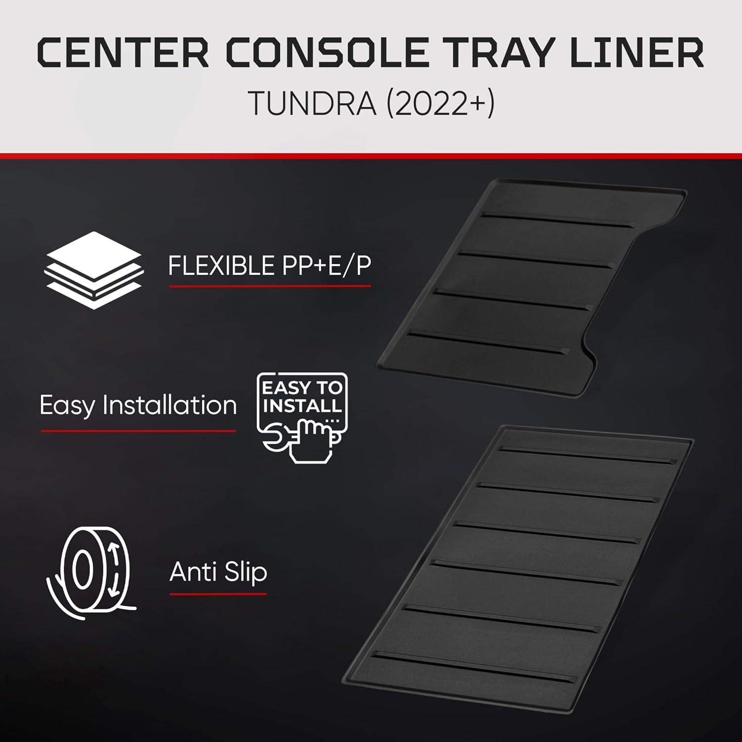AJT DESIGN Center Console Organizer Tray Liner Compatible with 2022+ Toyota Tundra Platinum, 1794, TRD PRO, Capstone | Fits 2023+ Sequoia | Anti-Slip Mat for Car Console Organizer Tray | 2-Piece Black