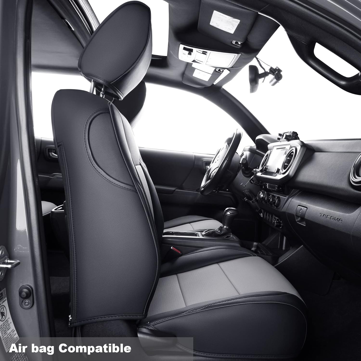 LUCKYMAN CLUB Tacoma Custom Fit Seat Covers for 2024 2025 Tacoma Crew Cab with Faux Leather (Black & Gray)