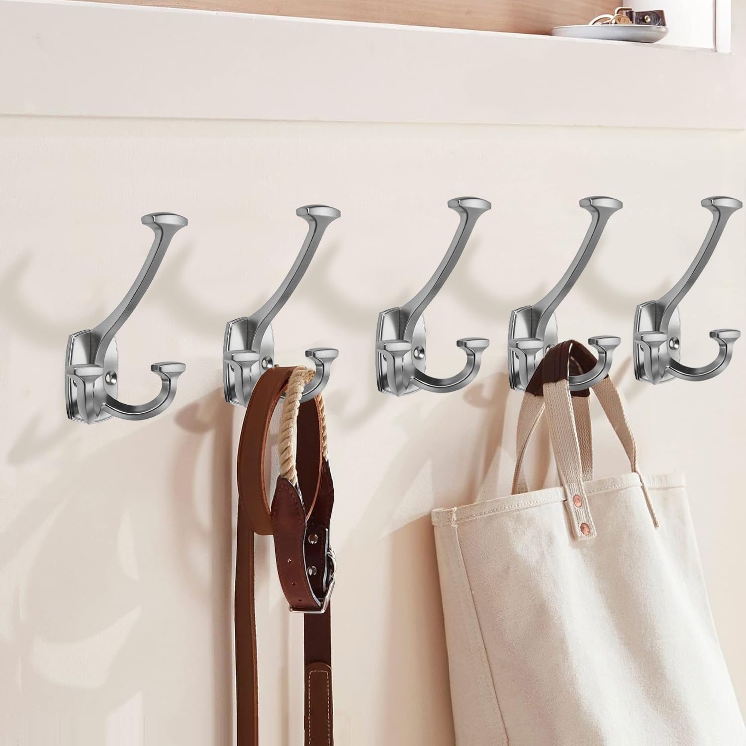 - Double-Sided Design, Space-Saving:The double-sided hook design allows users to hang two items simultaneously, improving space utilization and efficiently organizing and categorizing belongings.