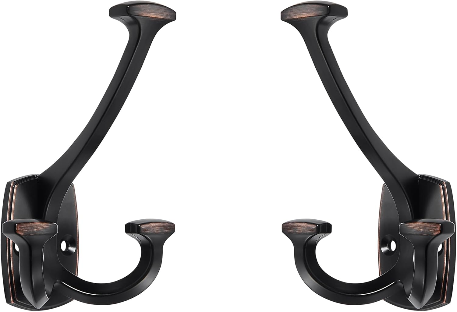 Large Wall Double-Sided Hook 2 Pack Oil Rubbed Bronze Hook Decorative Heavy Duty Solid Large Coat Hooks for Towel Hanging Coats Robe Towel Bags Door Back 2 Prong Hooks