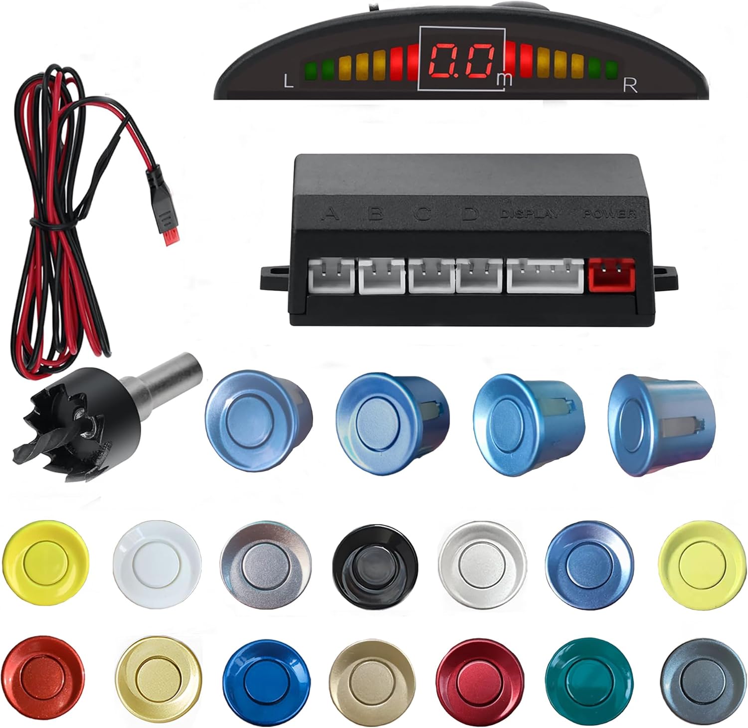 Car Reverse Backup Parking Sensor Radar System kit The LED Display with 3 Colors can Both Shows Distance Data and warn You with beep Sound Adjustable Volume Compact and Easy to Install Light Blue