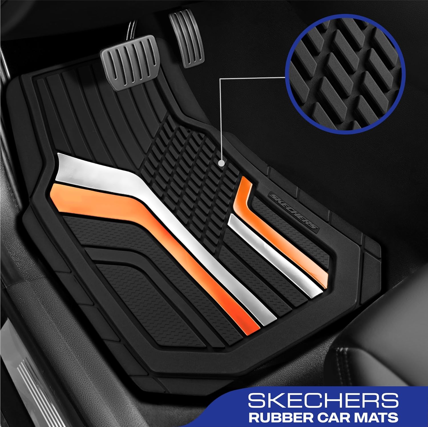 Skechers Heavy Duty Rubber Car Floor Mats,Dual Color Design Floor Mats,All Weather Car Mats,Waterproof Trim to Fit Universal Floor Liner Car Mats,Automotive Floor Mats for Cars Trucks Suvs,Orange