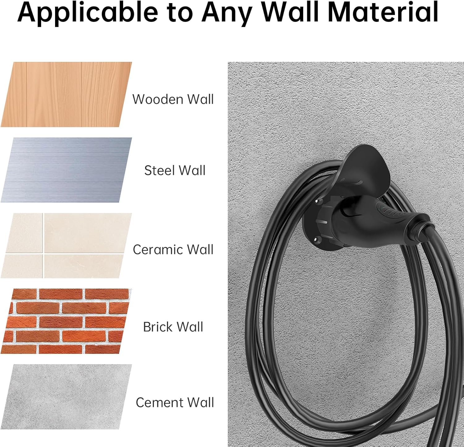 - 5-Minute Installation: Drill holes and secure it to your wall with the included 4 screws and anchors—perfect for indoor or outdoor use. Slide your EV charger into the dock until it clicks; the built-in locking feature holds the nozzle firmly in place to prevent it from slipping out. If you encounter any issues with the product, feel free to contact us, and we’ll resolve them for you