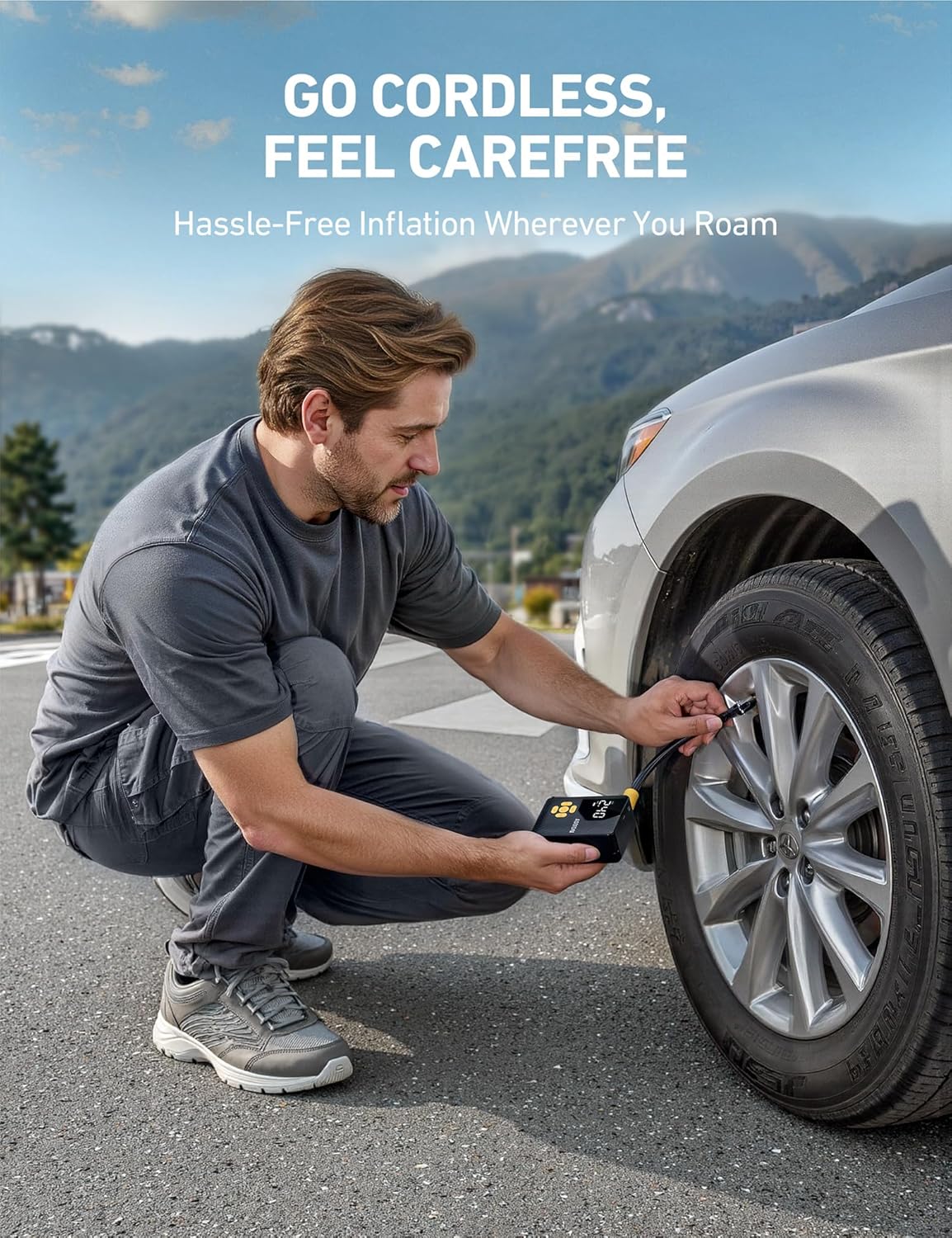 - LONG DURATION: Once the L7 Mini Tire Inflator is fully charged, it can easily handle multiple inflation needs, efficiently inflating up to 8 car tires/18 motorcycle tires/ 30 bicycle tires/88 basketballs. Backed by a high-capacity battery pack, the L7 Mini, as part of new car accessories, is a reliable & long-lasting partner for camping, long trips, daily use, and beyond.
