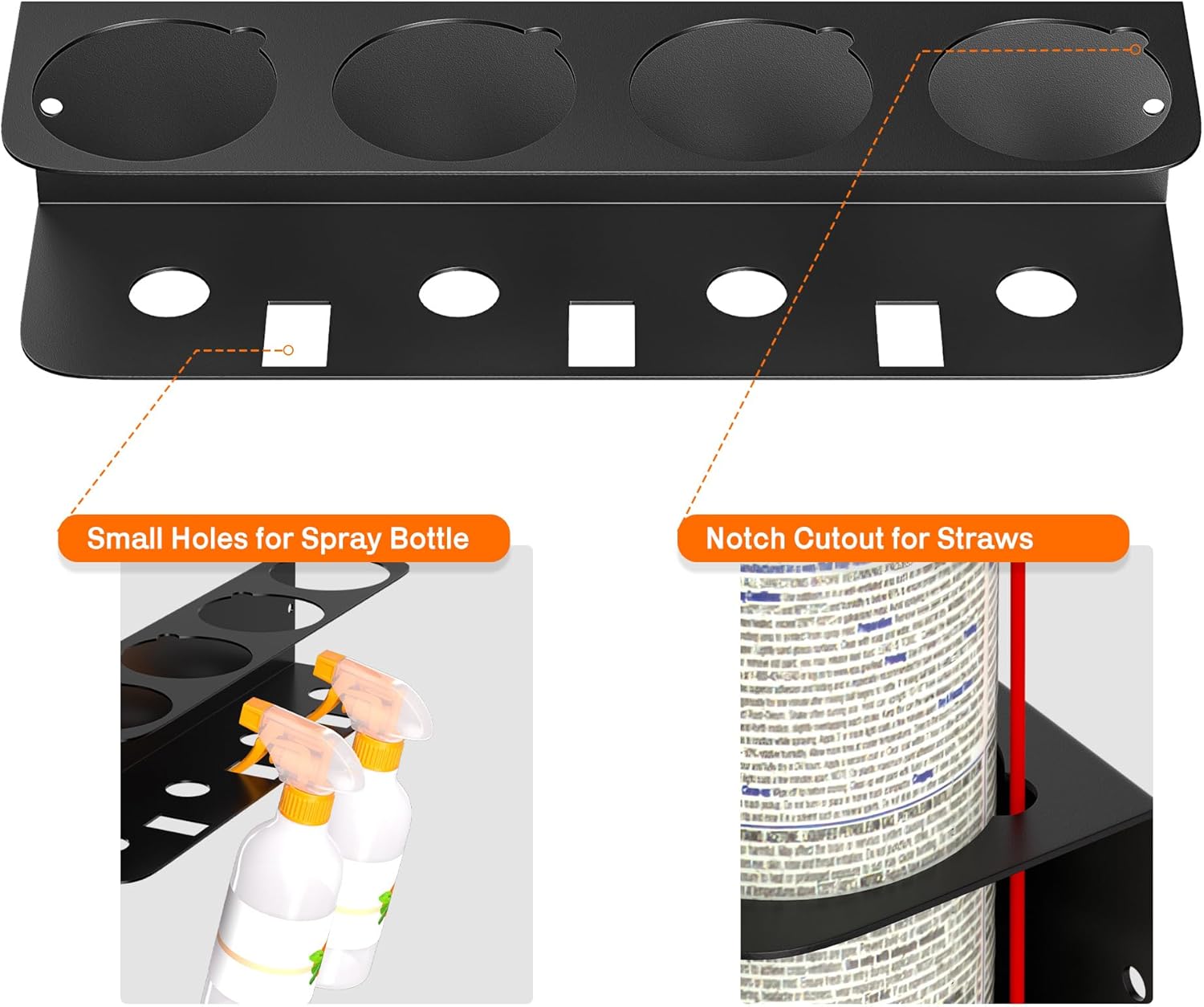 - MULTI-FUNCTIONAL STORAGE DESIGN: In addition to storing spray cans, the spray bottle holder features slots for trigger bottles and small notches to securely hold thin straws, offering versatile storage for various needs