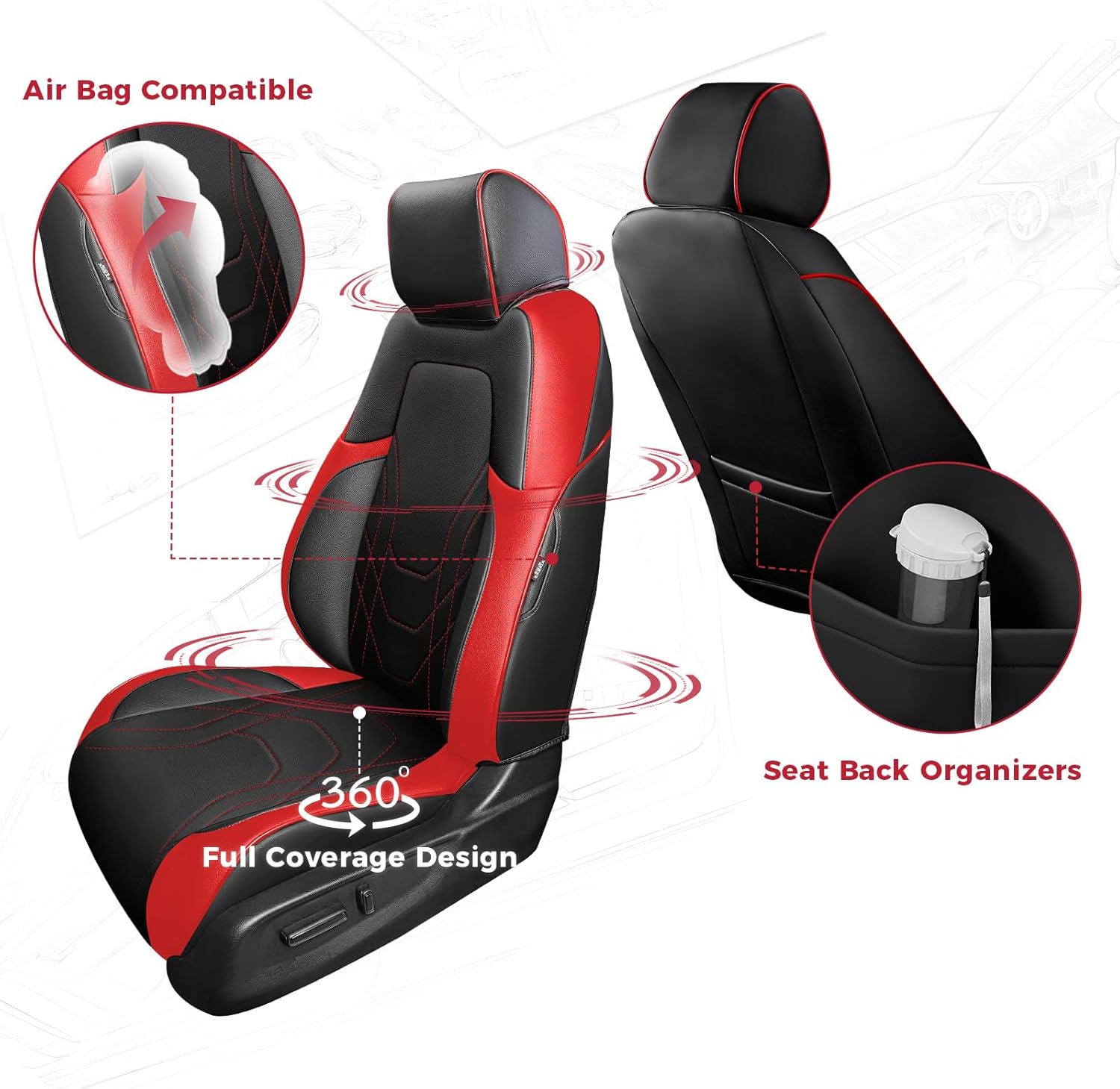 FREESOO CRV Seat Covers Full Set, for Honda CRV LX EX EX-L Sport Touring Hybrid 2017 2018 2019 2020 2021 2022, Custom Fit Seat Covers for CRV, Waterproof Leather Car Seat Covers, Black & Red