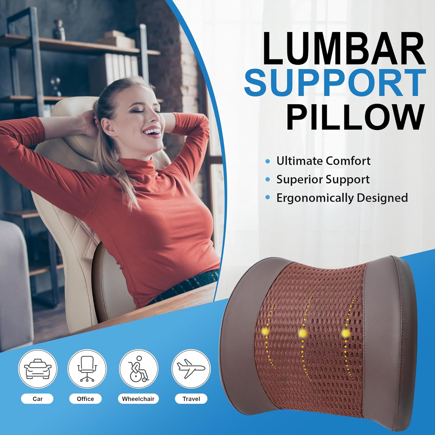 Memory Foam Lumbar Support Cushion Relieves Lower Back Pain for Car Seat, Office Chair, and Wheelchair, 4D Mesh, Brown