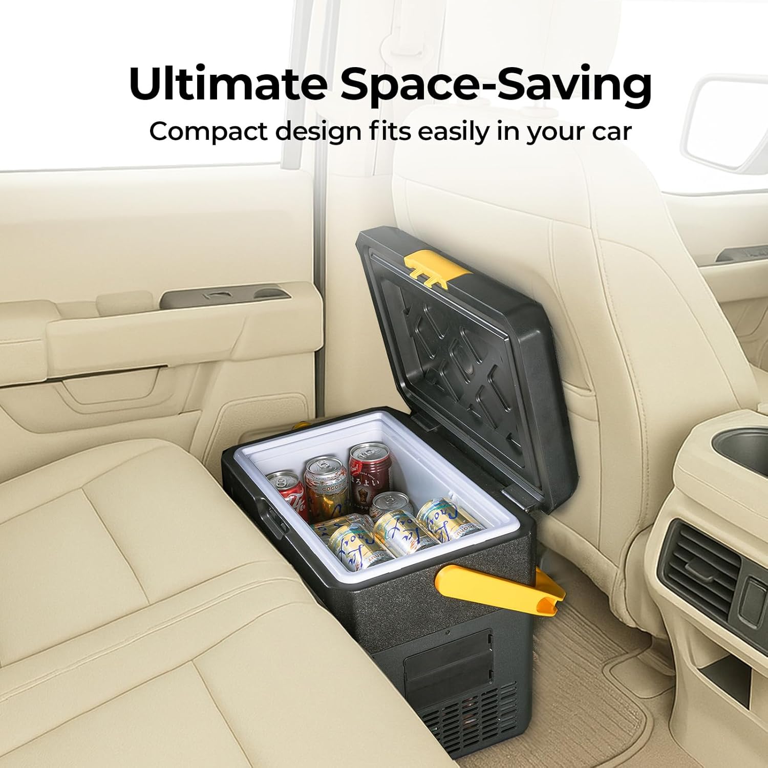 - Unmatched Portability: The standout feature of this car refrigerator is its robust and comfortable handle, making transportation a breeze. Simply grab and go, whether you're heading for a road trip, camping adventure, or tailgating event