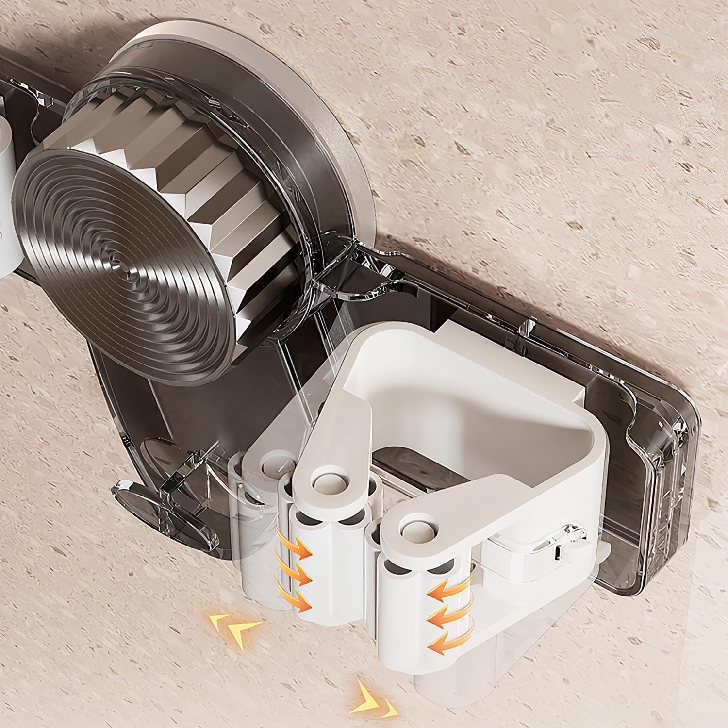 2PCS Broom Holder Mop Hanger,No punching required Broom Hanger Organizer,Broom Holder Wall Mountfor Bathroom, Kitchen, Office,Utility Room,Laundry Room(White+Gray)