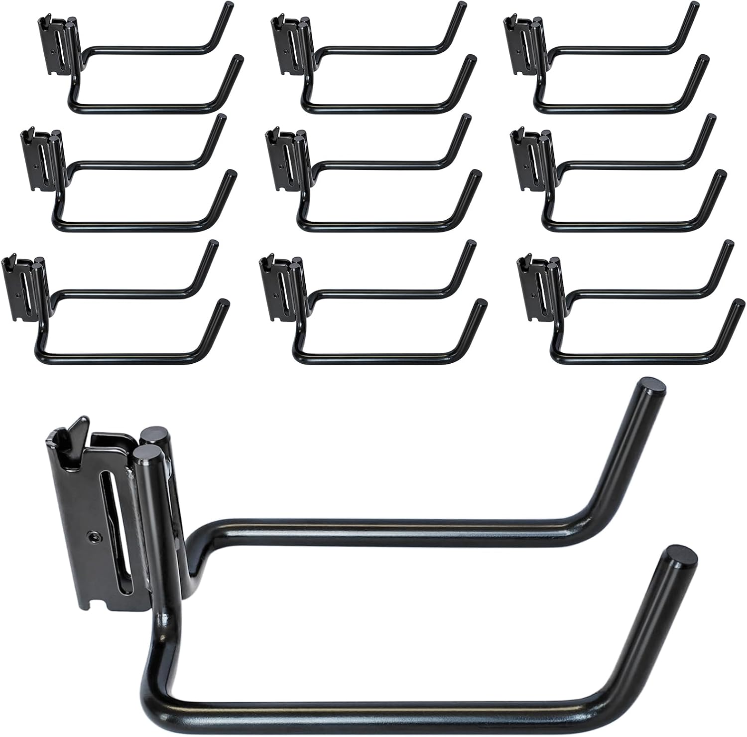 10 Pack E Track Double J Hooks, Heavy Duty Black Large Steel Shovel/Tool Hanger for Store Long Handled Tools, E Track Tie Down Accessories for Trailers, Trucks, Garden Tools Organizers Storage