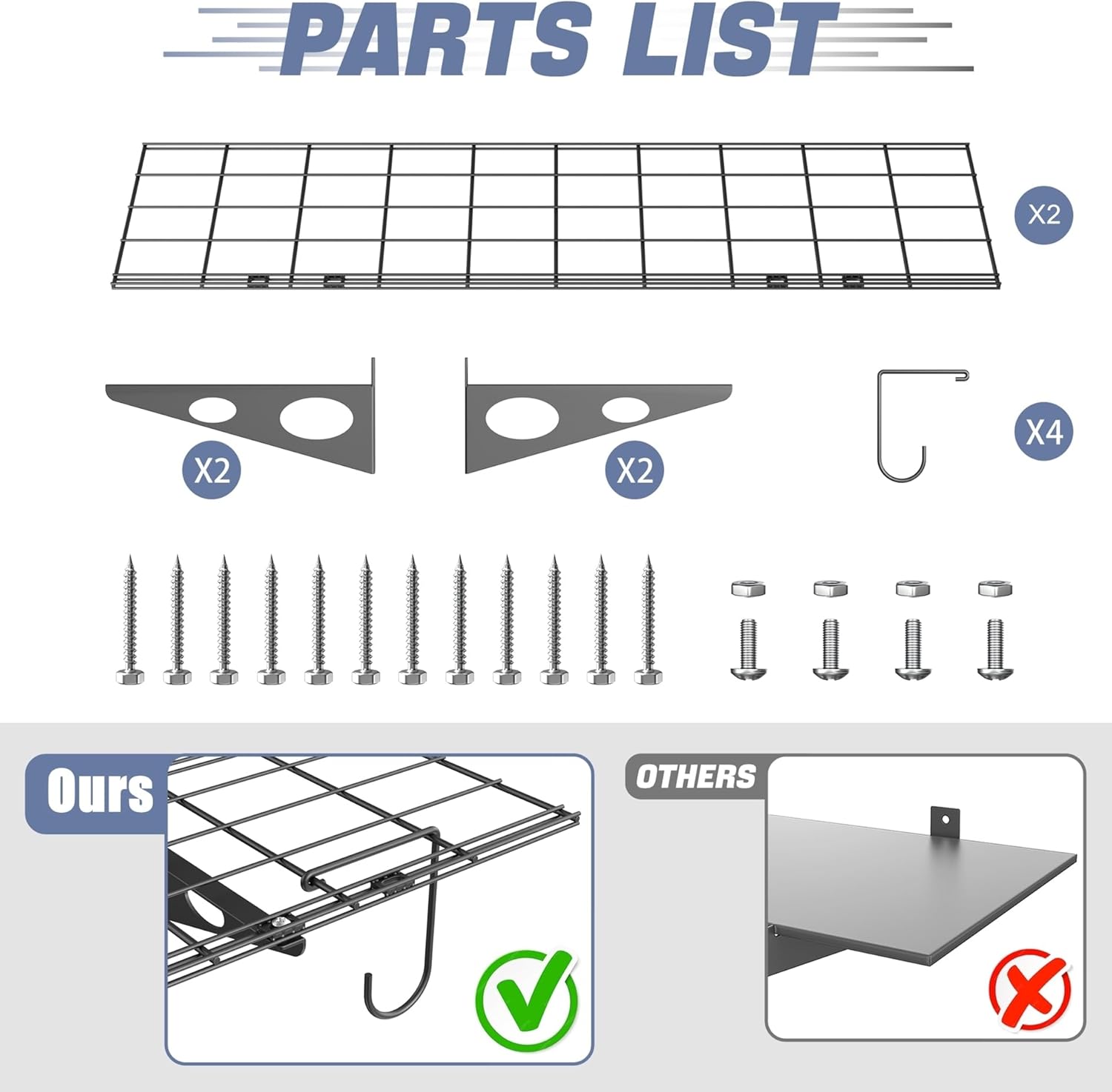 - Well Constructed: Built from high-quality steel with a durable powder-coated finish, this garage wall shelf is designed for long-lasting use. Each shelf holds up to 220 lbs, making it perfect for storing tools, equipment, and more