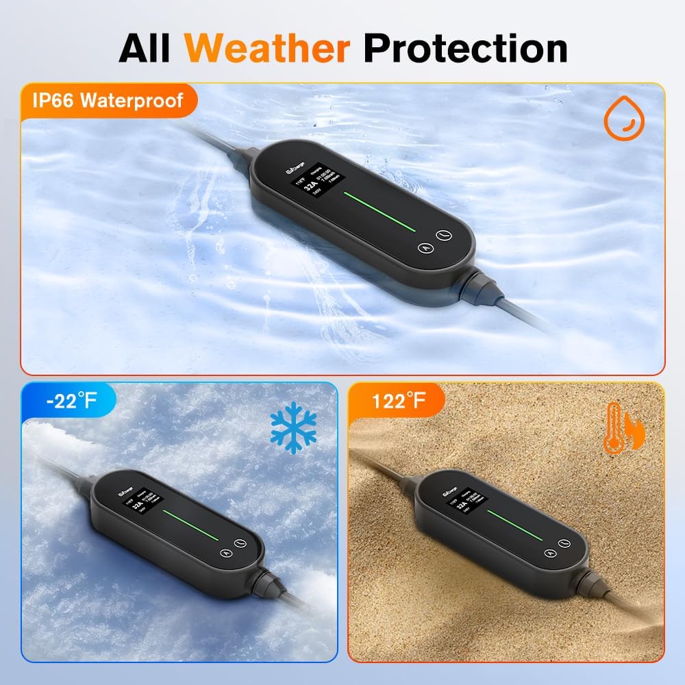 - 【Safer & Reliable Charger】 Safety is a top priority, which is why this charger is equipped with a LED indicator on the control box. This indicator displays the charging status of your EV, alerting you immediately to any potential issues. Additionally, the charger incorporates triple protection functions, including Leakag Protection, Overcharge Protection, and Under Voltage Protection, ensuring a safe and reliable charging experience.