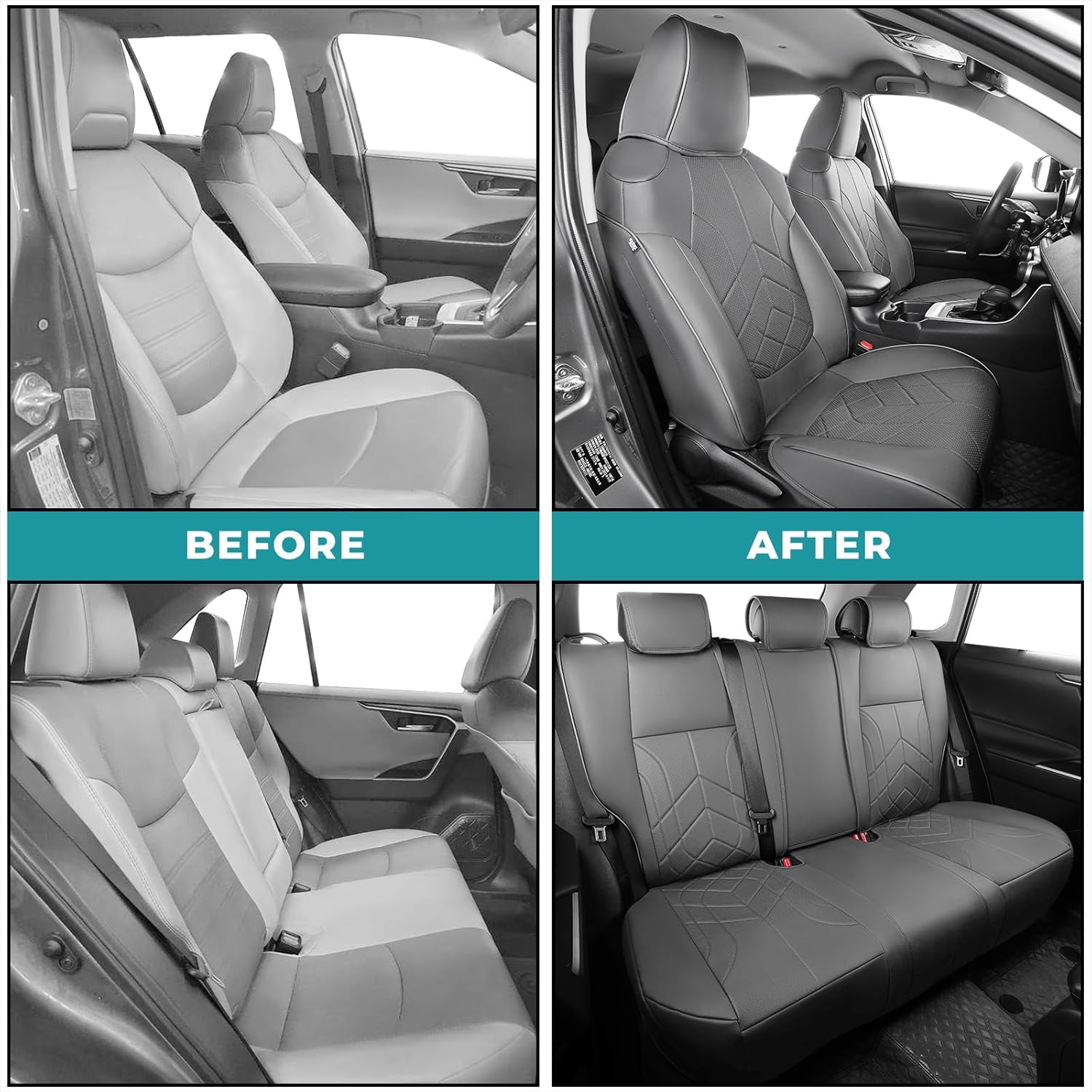 for Toyota RAV4 Seat Covers 2019 2020 2021 2022 2023 2024 2025 RAV 4 Prime & Hybrid XLE LE Limited XLE Premium (Not for XSE/SE Hybrid) - Custom Leather Car Seat Covers Full Set - BlackGrey