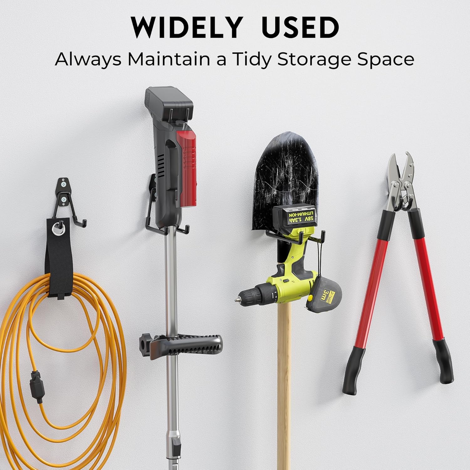 - ✅ OPTIMIZED STORAGE SOLUTION FOR YOUR GARAGE – Maximize your garage space with these heavy-duty hooks, designed to keep your tools and equipment organized and easily accessible. The adjustable cable ties keep cords neatly stored and prevent clutter, allowing for a more efficient and tidy garage setup