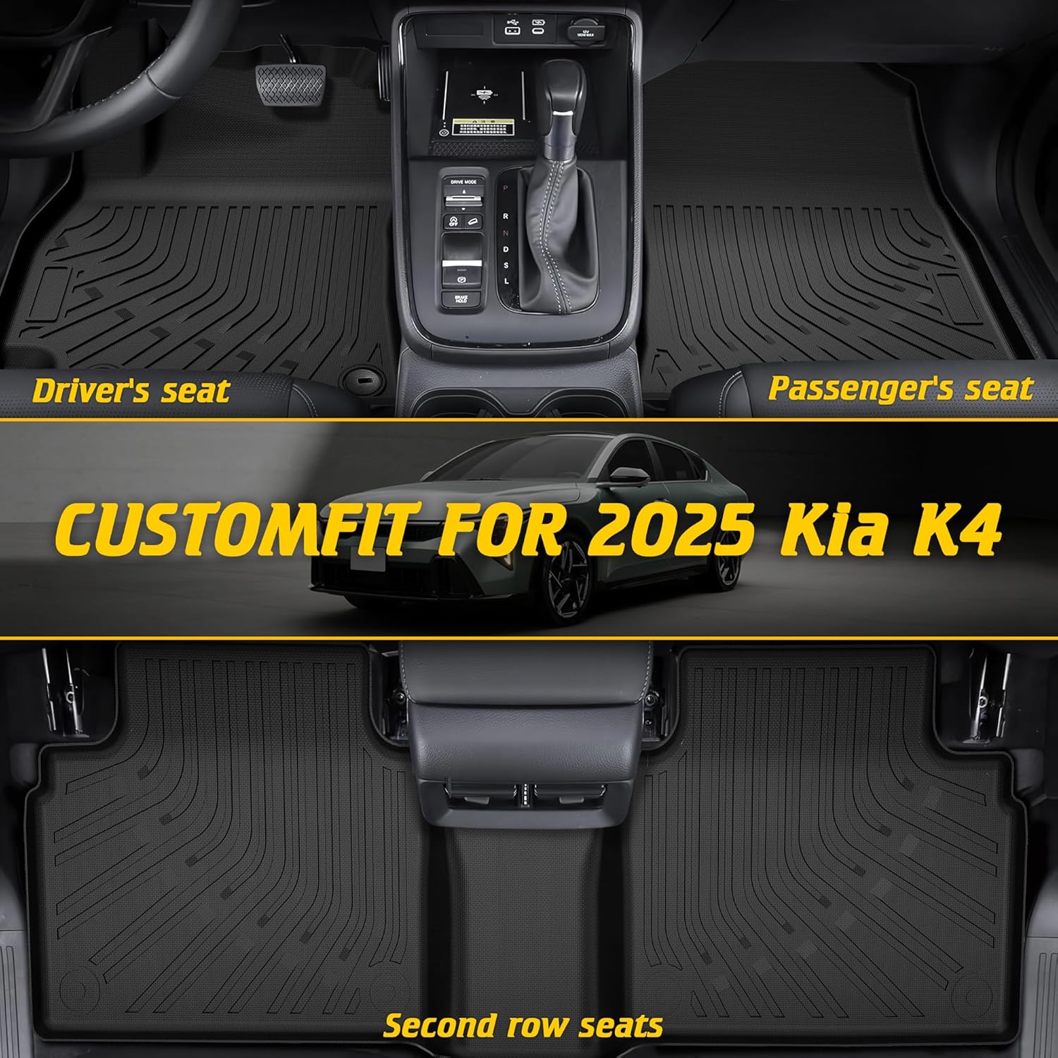 - CUSTOM FITMENT:Precision 3D laser-scanned custom floor mats for cars fit for KIA K4 2025, advanced 3D scanning ensures edge-to-edge coverage for driver/passenger floor liners, cargo mat, and zero slippage(Only Fit for KIA K4 2025)