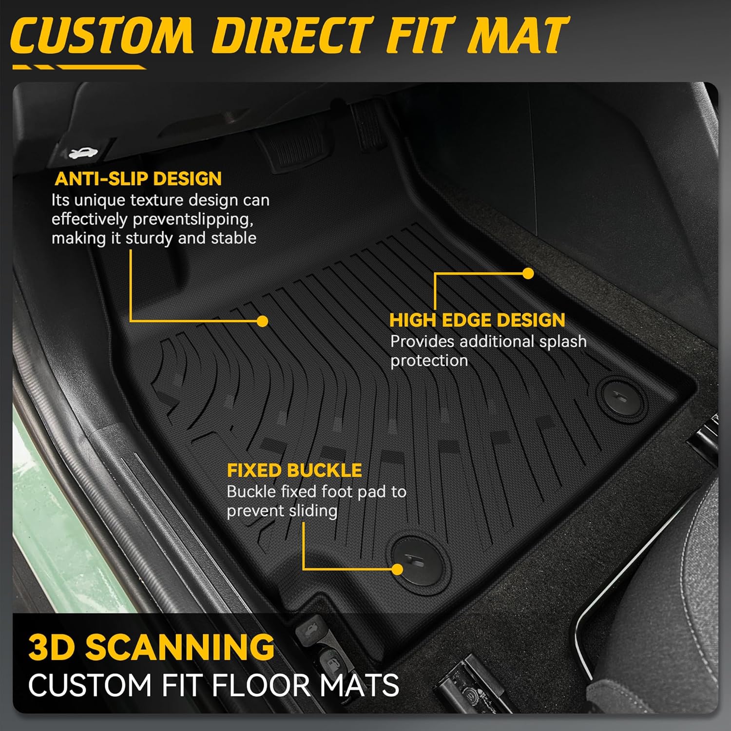 - FOUR LAYER PROCESS ALL-WEATHER PROTECTION:Each floor mat & cargo mat is constructed with a 4-layer composite, includes abrasion-resistant base layer, noise-dampening mid-layer, anti-slip textured surface,odor-neutralizing filter, protective coating precision-engineered for multi-functional performance, 4-piece kit with raised edges