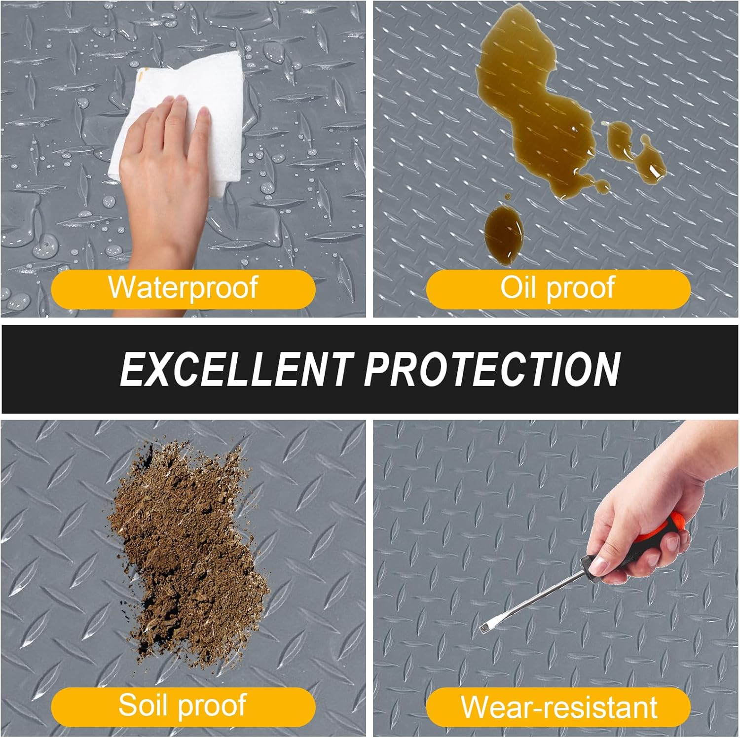 - Waterproof & Effortless Cleaning: Stain-resistant PVC repels oil, grease, and mud. Simply wipe with a cloth, hose down, or vacuum for a like-new finish—no harsh chemicals needed.