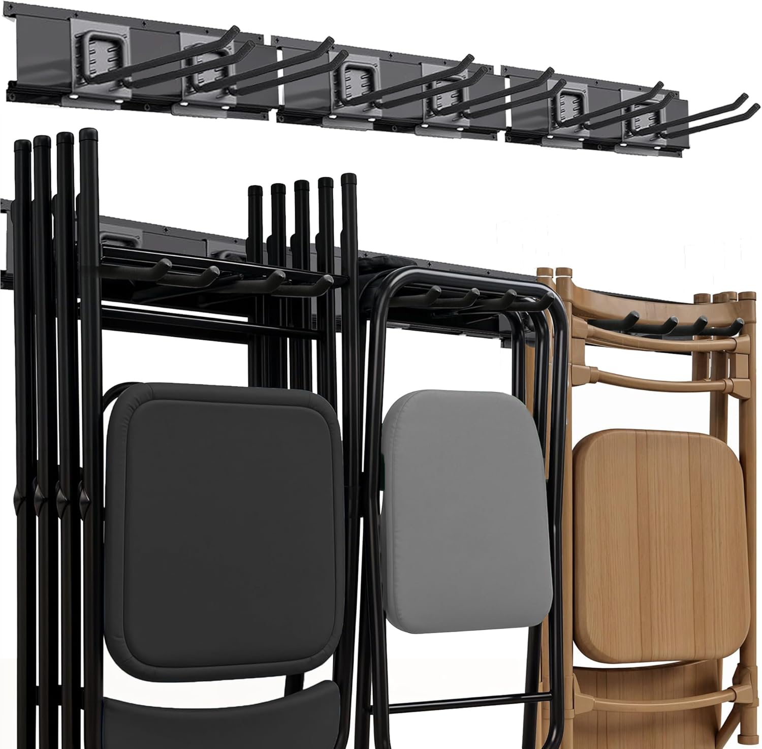 - Robust Load-Bearing Capacity – Each 8.5-inch steel hook supports up to 50 lbs and accommodates multiple folding chairs per hook, making it ideal for storing bulky items like power tools, garden gear, and event seating off the ground.