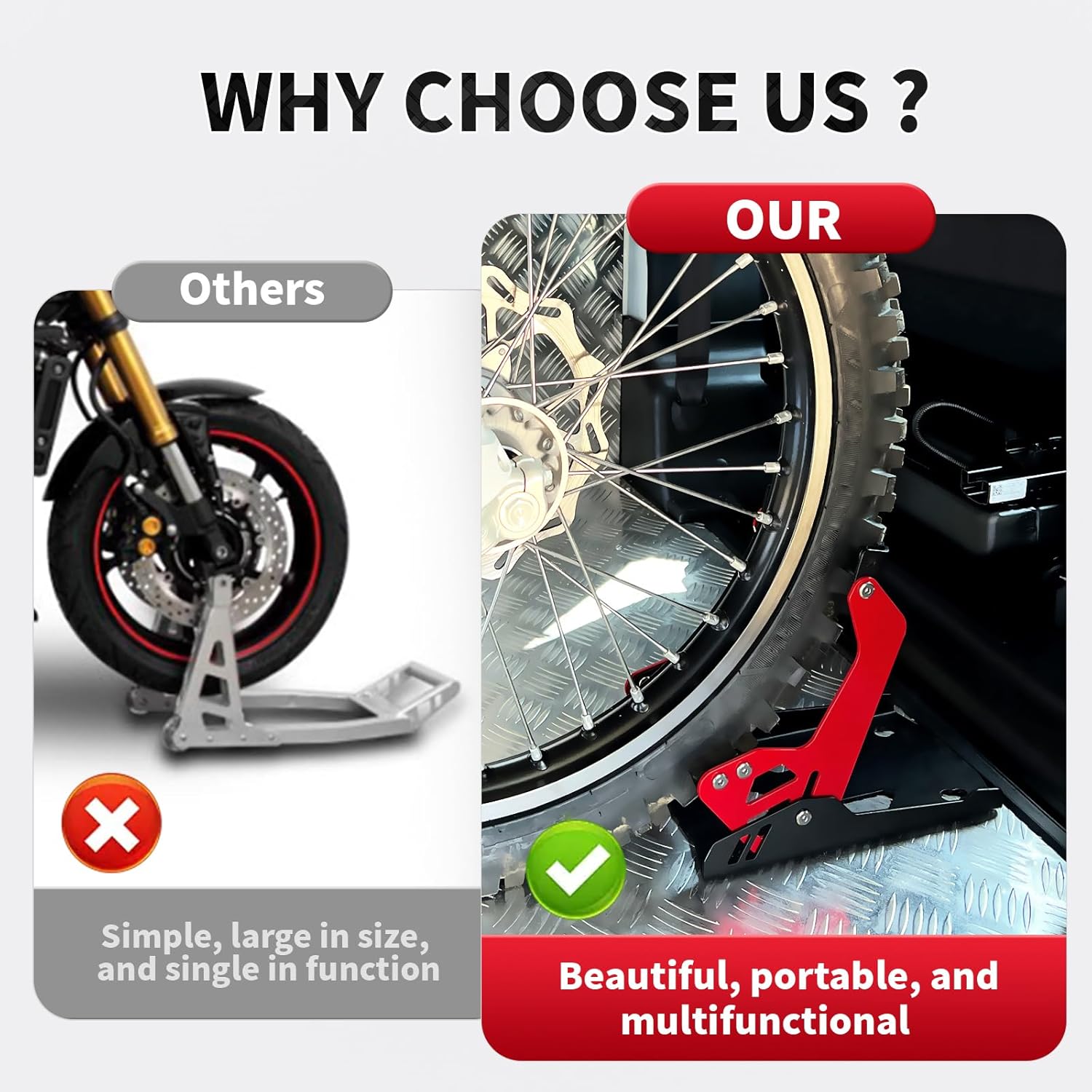 Motorcycle Wheel Chock,Special for Transportation Portable Adjustable 1800 lbs Capacity Front Tire Stand for 8"-21" Wheel Universal for Most Crusier Sports Dirt Bikes Trailer Truck-Red