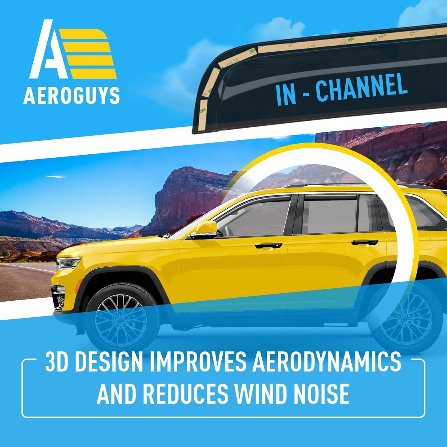 Extra Durable Window Deflectors in-Channel Window Visors Rain Guards Fit for Jeep Grand Cherokee 2022-2025, Sun Visors, Wind Vent for Shades, Exterior Car Accessories - 4pcs. AG0844