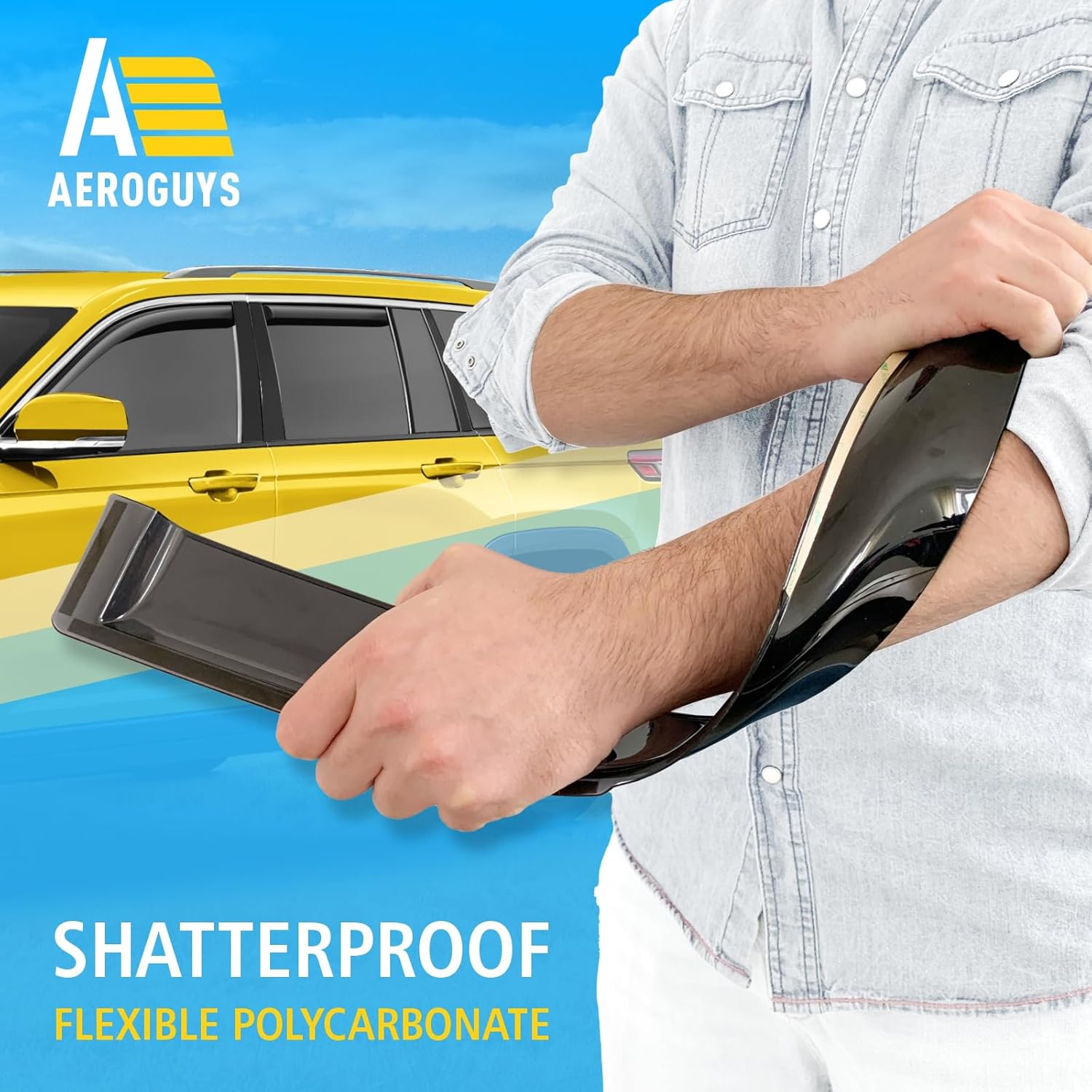 - Incredibly Durable AEROGUYS Auto Window Deflectors – They are made with strong and tough polycarbonate which is clear and scratch-resistant. They also provide UV protection making your ride more comfortable under all weather conditions.