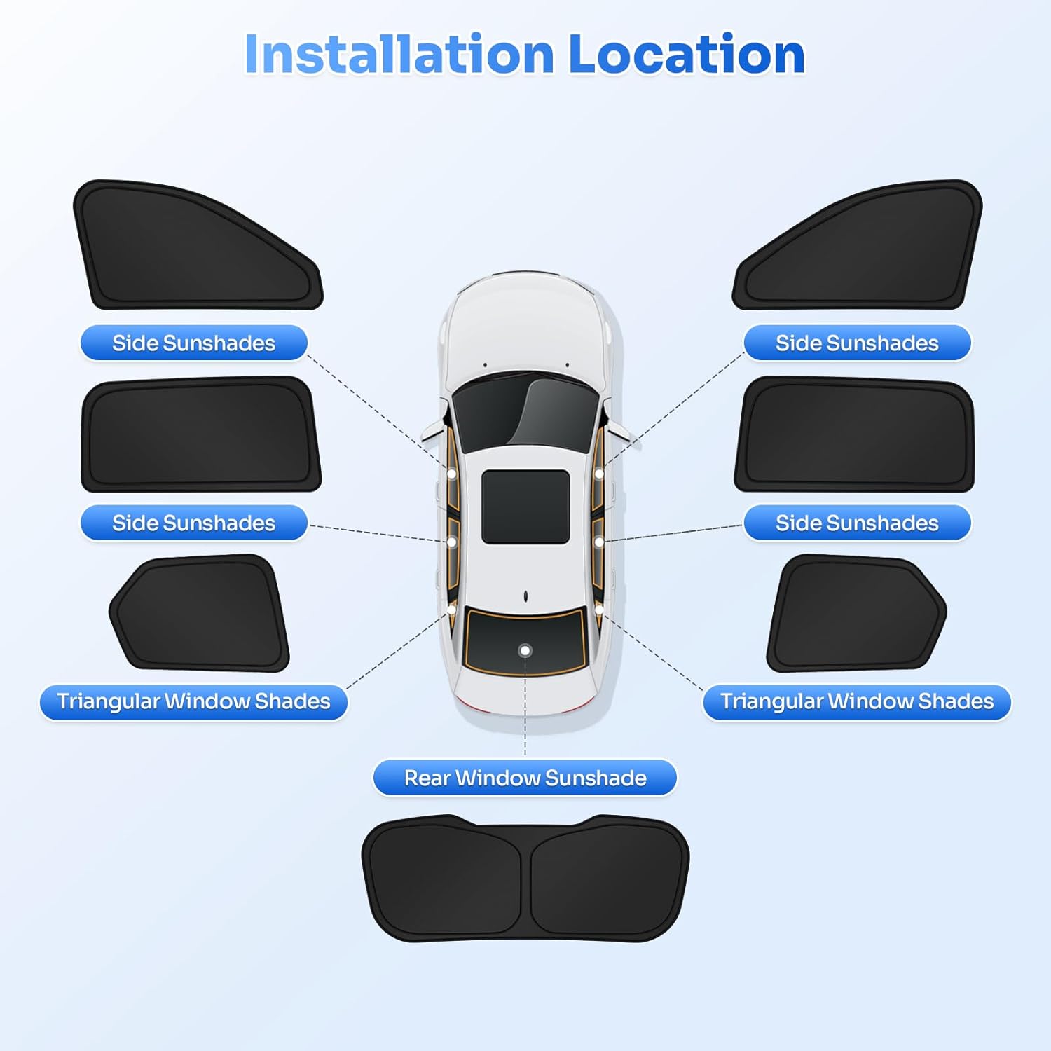 - 【All-Round Protection】Our window sun blocker kit is perfect for blocking harmful UV rays from damaging your car interior. The window shades also do a good job of protecting babies and kids from sunshine, and reducing car interior temperature. Great accessories for your car!
