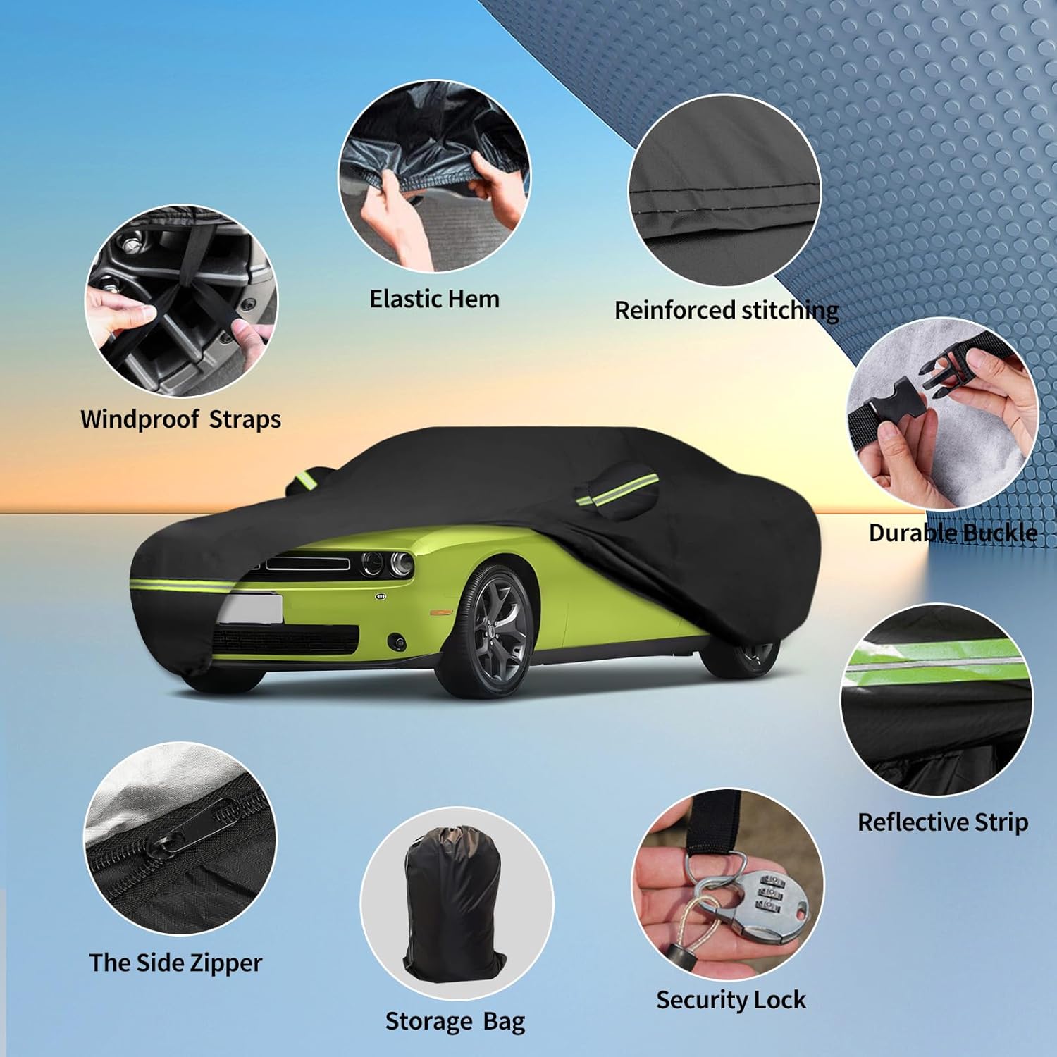 - 【Car Cover Fit for 2008-2025 Dodge Challenger】Our Waterproof Car Covers for 2008-2025 Dodge Challenger,Please double-check your car model and length before making a purchase.