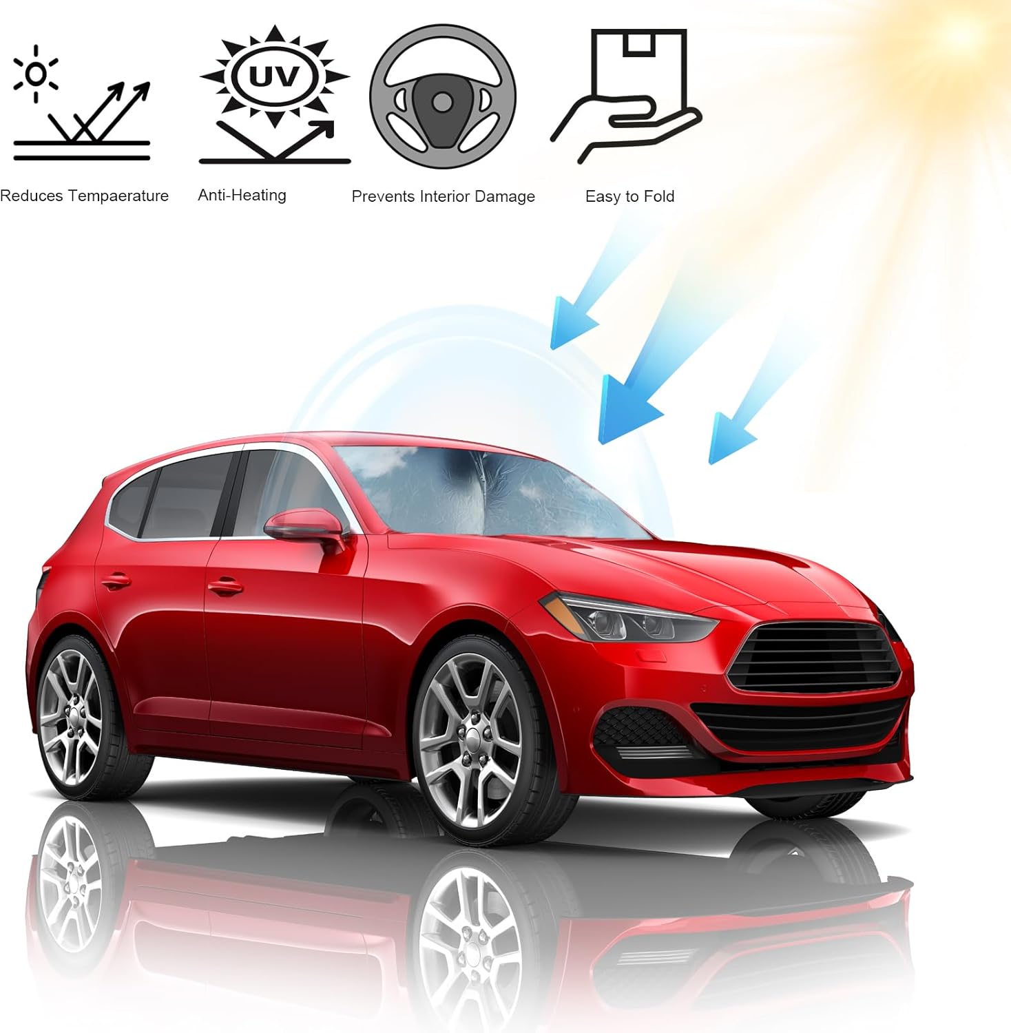 - Easy To Install And Store:Featuring flexible memory-steel framing, Our car front windshield sunshade for Ford sun shade springs open effortlessly and folds into its included storage pouch in seconds. The reinforced wire resists bending or warping, ensuring smooth deployment every time—ideal for daily commutes or road trips.summer days.