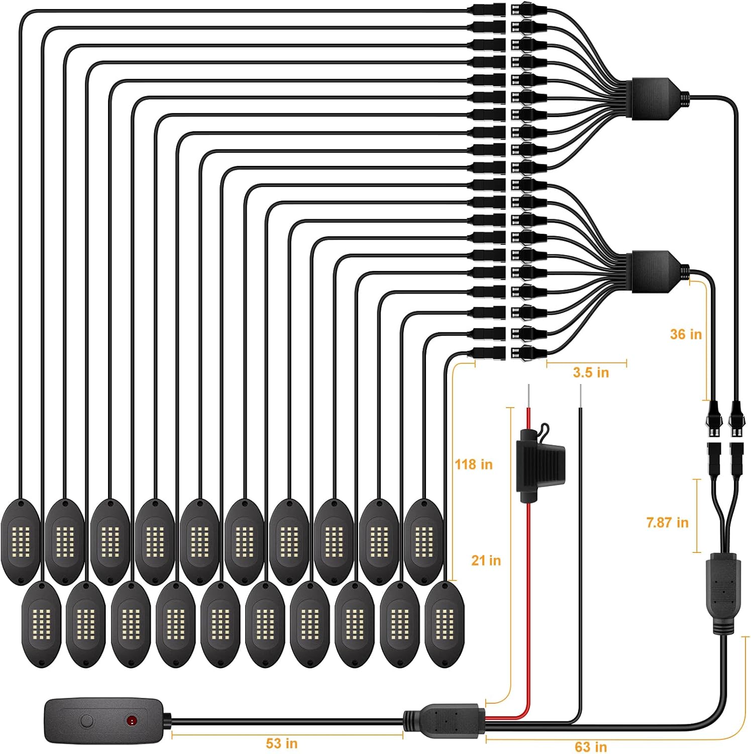- 【118 inch Wire】Extend the cable of each pod to 118 inches. If these wires are not long enough, please search for ASIN: B0DLSL74CC on Amazon to add more, this extension wire is plug and play, specifically compatible with Honalia white rock lights for trucks