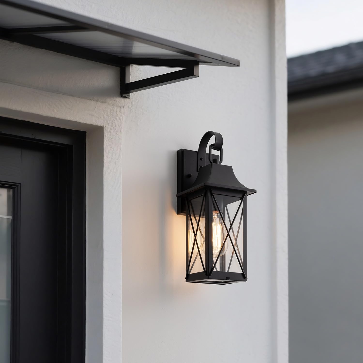 - Matte black finish and clear glass panels maximize the vintage character of this wall sconce