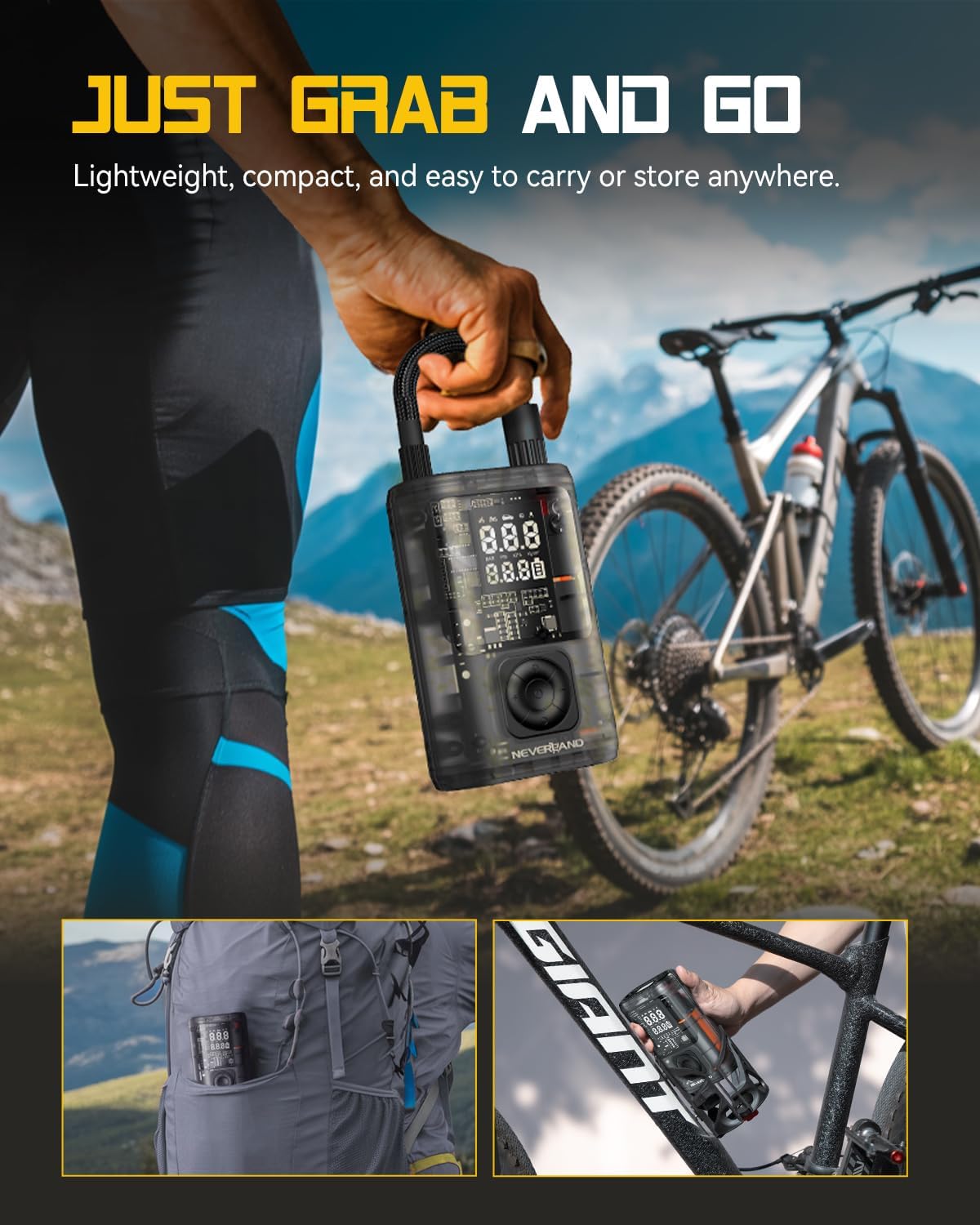 - 【Perfect Gift & Must-Have Car Accessories】 The NEVERLAND portable tire inflator for car and bike is a smart, useful present for birthdays, holidays, or road trip season. Ideal as car accessories for men or women, this electric bike pump offers safety, power, and peace of mind. It's an essential companion on the road for cyclists and drivers alike