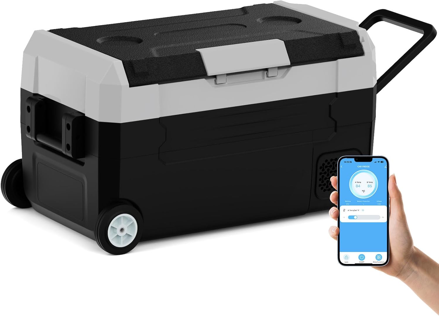 - ❄️Dual Storage & APP Control: Innovative intelligent dual temperature zone function, free switching of freezing/refrigeration functions to meet different storage needs. With Bluetooth mode and app control, you can conveniently manage the car cooler from a distance to facilitate your journey.