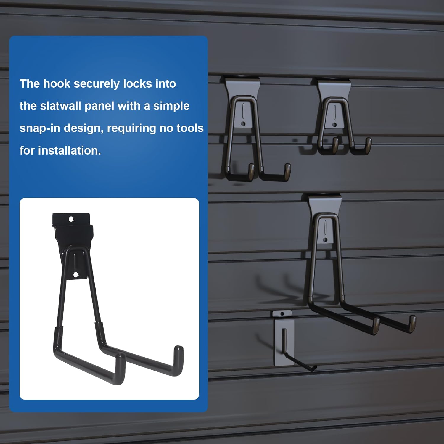 - Space-Saving Solution – Paired with our slatwall panels, these hooks are ideal for organizing your garage, living room, kitchen, laundry room, study, office, or any space requiring smart daily storage.