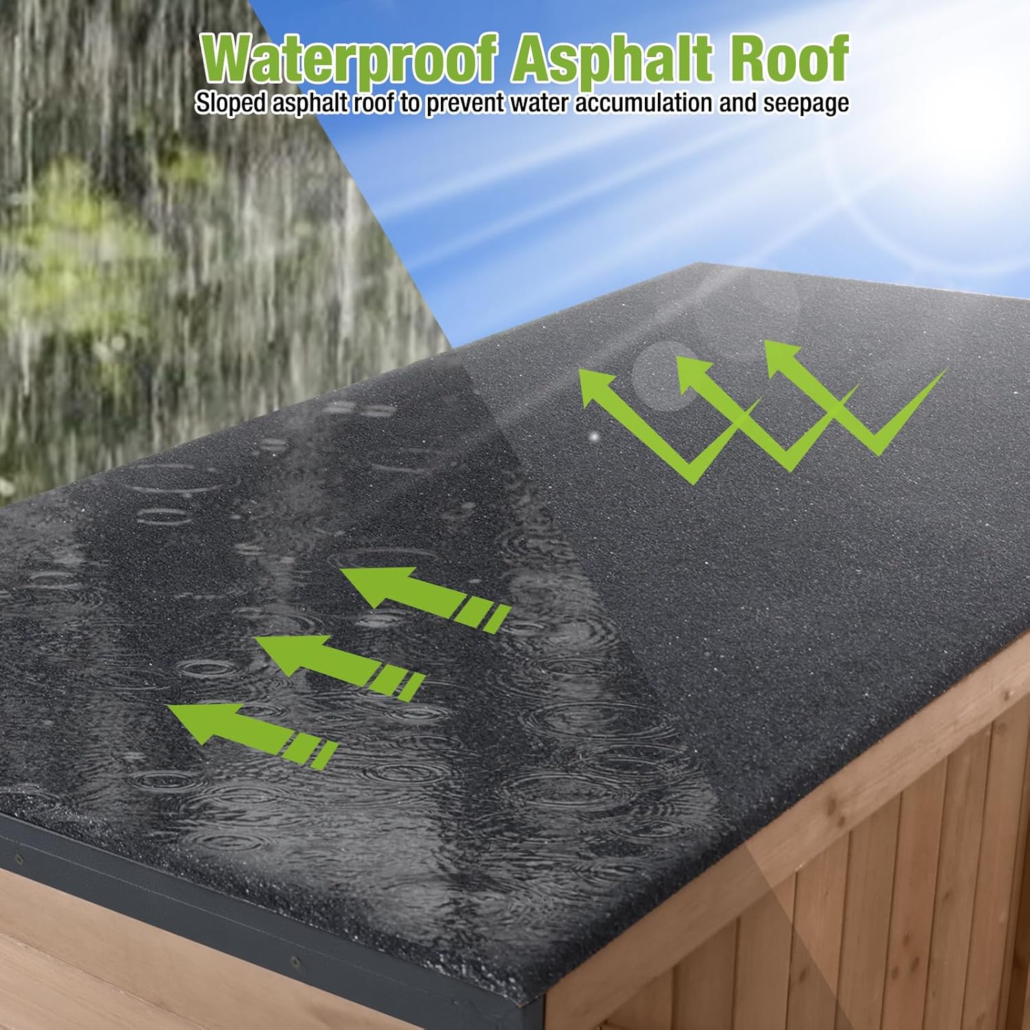 - 【Lockable Door and Waterproof Asphalt Roof】Lockable doors ensure security,preventing theft of items and avoiding accidental entry by small animals.Full-coverage sloped asphalt roof to prevent water accumulation and seepage.