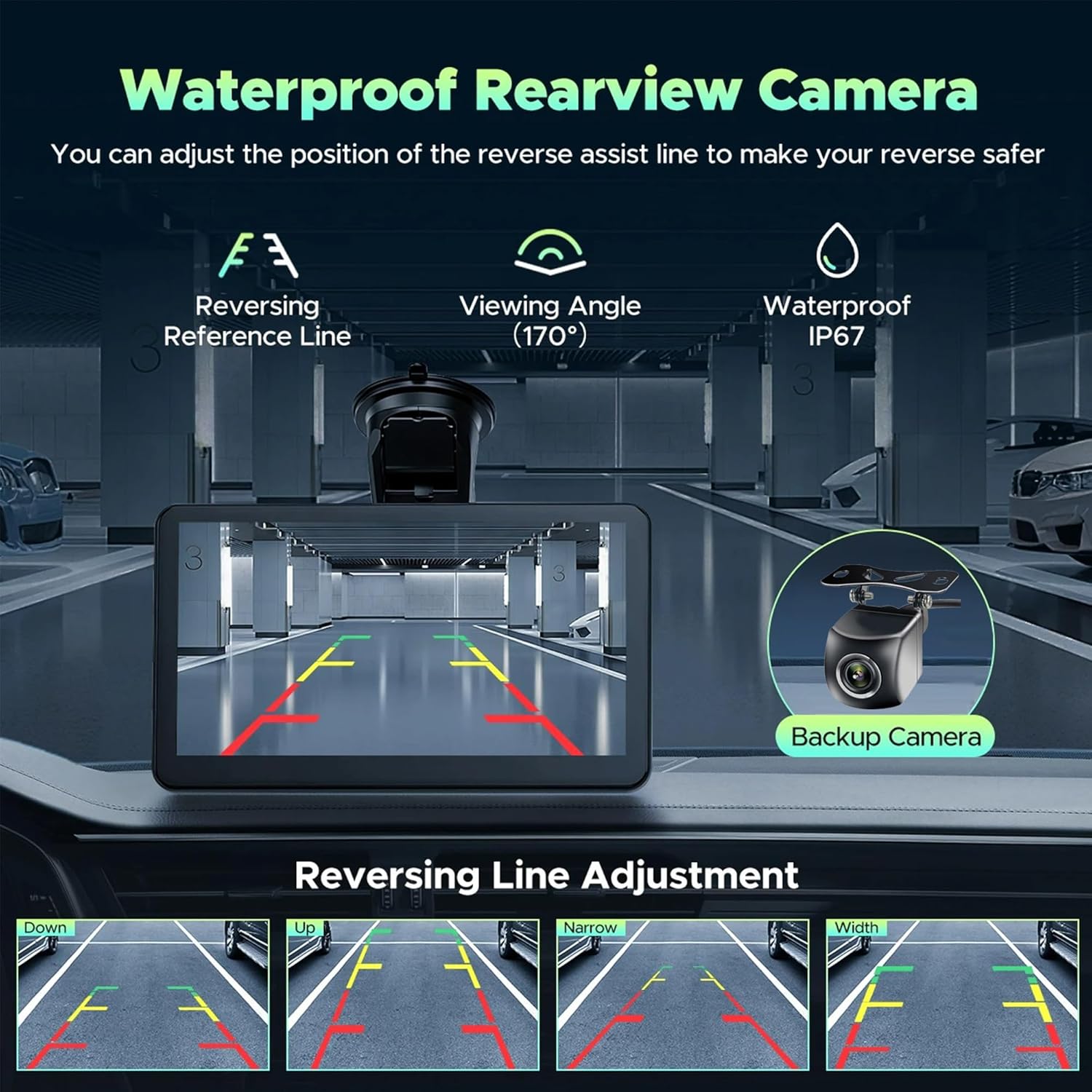 - 【Backup camera for safer parking】: The carplay screen features is equipped with a waterproof, high-definition rearview camera with night vision support. When you're in reverse, the camera automatically displays an image on the carplay screen, , making driving safety and parking easier