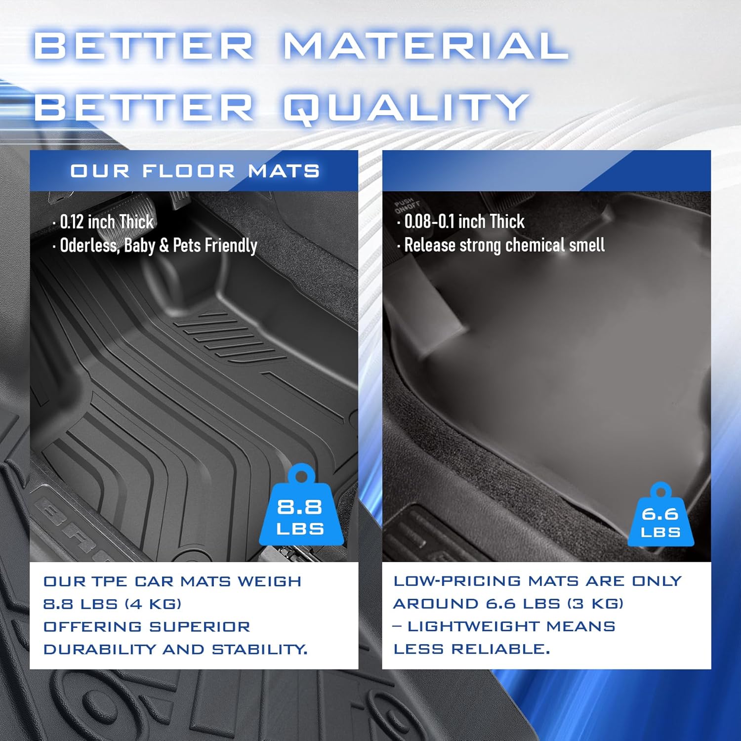 - 【Easy To Install & Clean】These floor liners are easy to install.There is no need to cut the car floor mats,no tools required,precise fit,just align and install.Before installing car floor mats,make sure the inside of your vehicle is clean and tidy.Our automobile floor mats are easy to clean,won't shed,and won't accumulate stains.Simply shake off dirt from the textured non-slip surface or spray water with a hose.You can also wipe directly with a damp towel or remove the floor mats and wash them with water and dry them to restore them to new condition