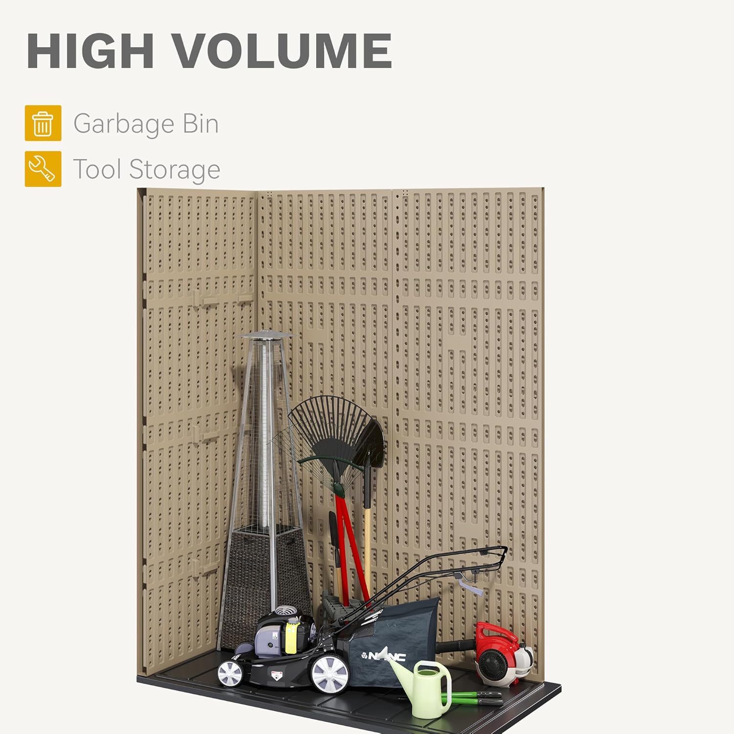 - Maximize Vertical Storage: Make the most of your outdoor space with this tall outdoor storage, allowing you to stash away garden tools, bicycles, pool supplies, and more to keep your outdoor area neat and organized
