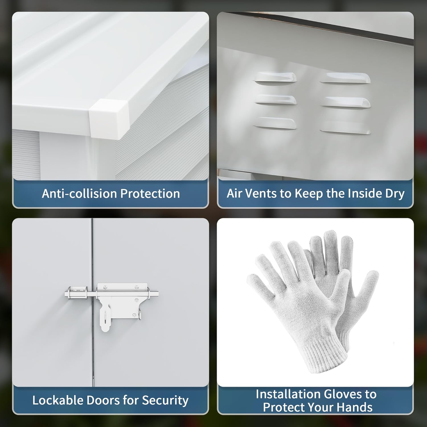 - Store Safely with Steel: Made with water-resistant galvanized steel that stands up to wind, rain, snow, UV, and even fire, our storage building offers heavy-duty protection. It's equipped with an internal foundation kit, enhancing stability, sealing the space from below, and keeping the inside clean