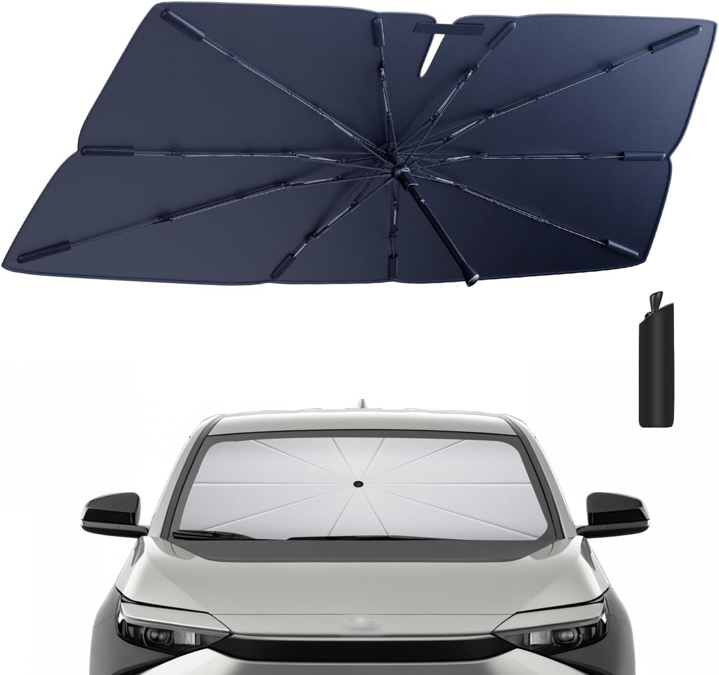 - Quick Installation and Portability for Toyota BZ4X: This Toyota BZ4X windshield sun shade umbrella provides instant shade and UV protection for your Toyota BZ4X. Its compact, foldable design fits neatly in the side storage, ensuring your Toyota BZ4X is always ready for sun protection. Perfect for every Toyota BZ4X owner, keeping your vehicle cool and protected.