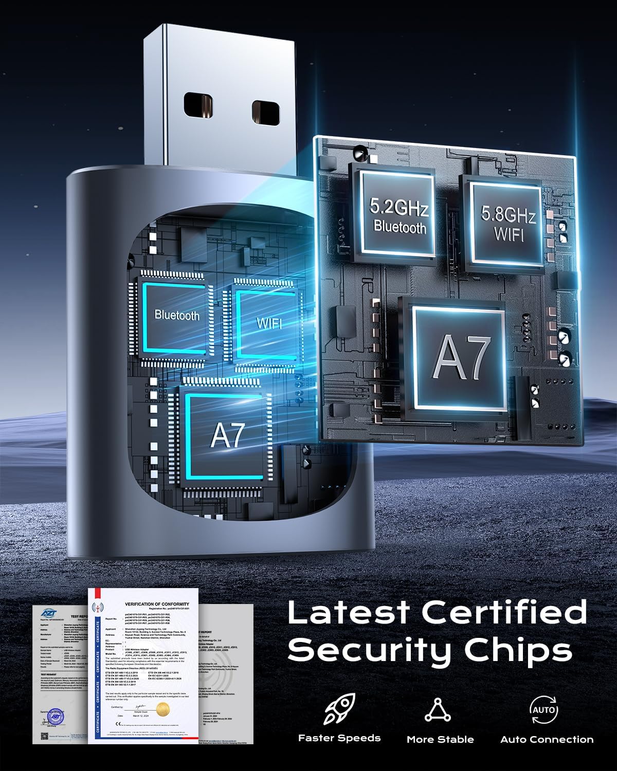 - A7 Chip: Zero-Lag Streaming: Powered by Apple-grade A7 chip, enjoy 0.3s app switching & <0.6s audio latency – 3X faster than generic carplay wireless adapter. Watch Apple/Google navigation while Spotify plays, all without frozen screens or audio cuts
