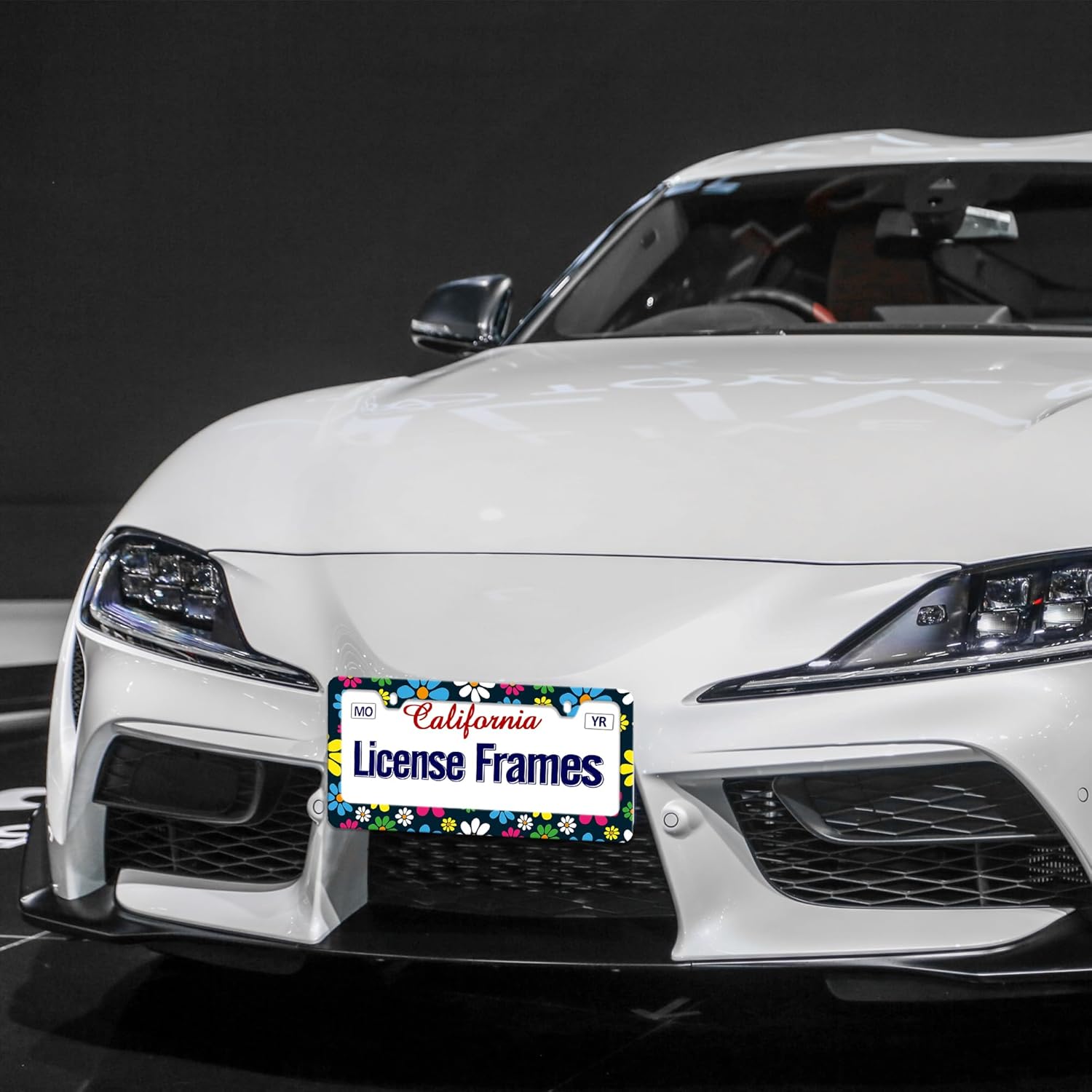 Hippie License Plate Frame Hippie Flower License Plate Covers,Tag Frame for Car Women 2 Pack with Screws 12.3" x 6.3"