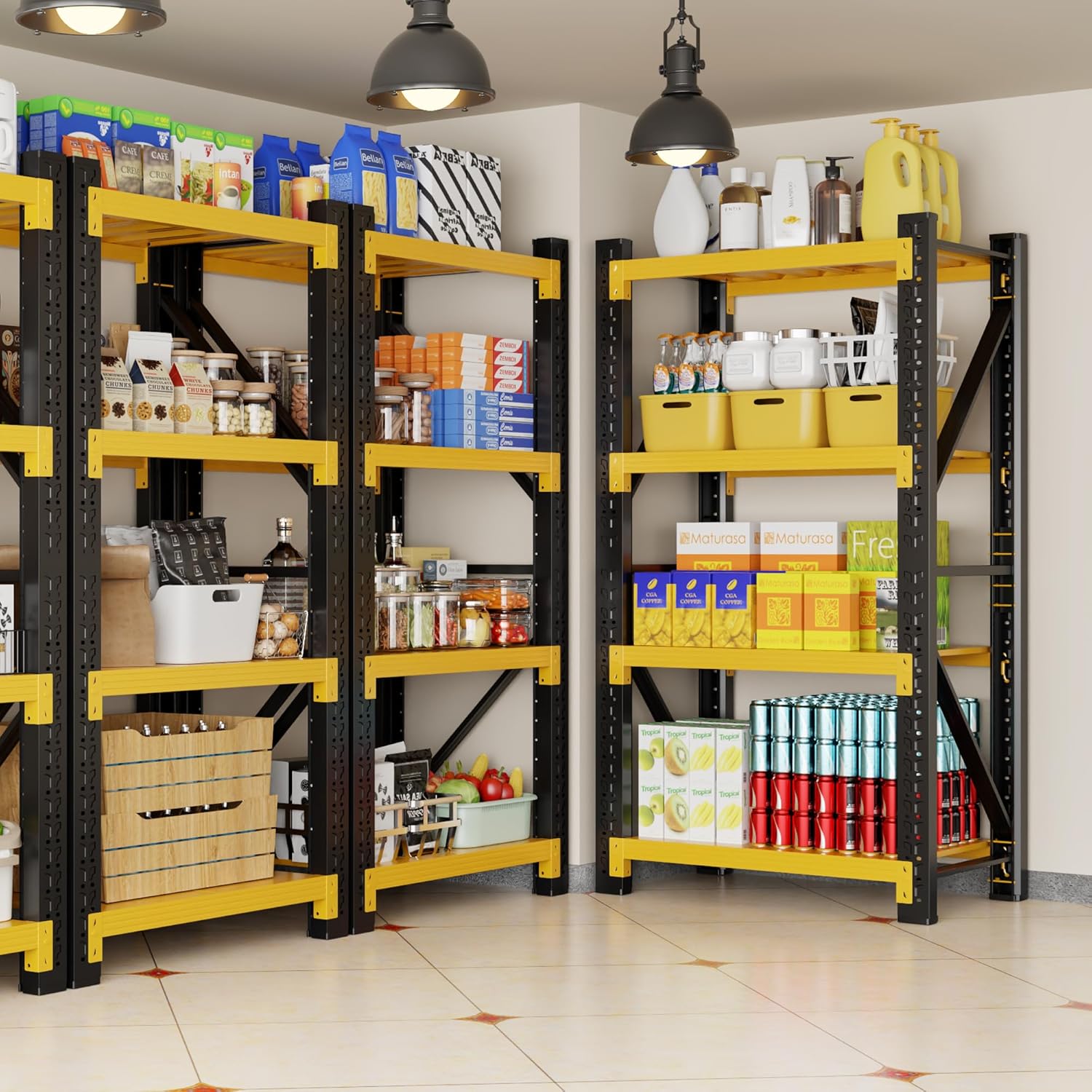 3000LBS Garage Shelving 32" W Garage Shelving Heavy Duty 4-Tier Metal Storage Shelves Adjustable Shelf Unit Storage Rack for Basement Supermarket Warehouse 32" W x 20" D x 78" H Yellow