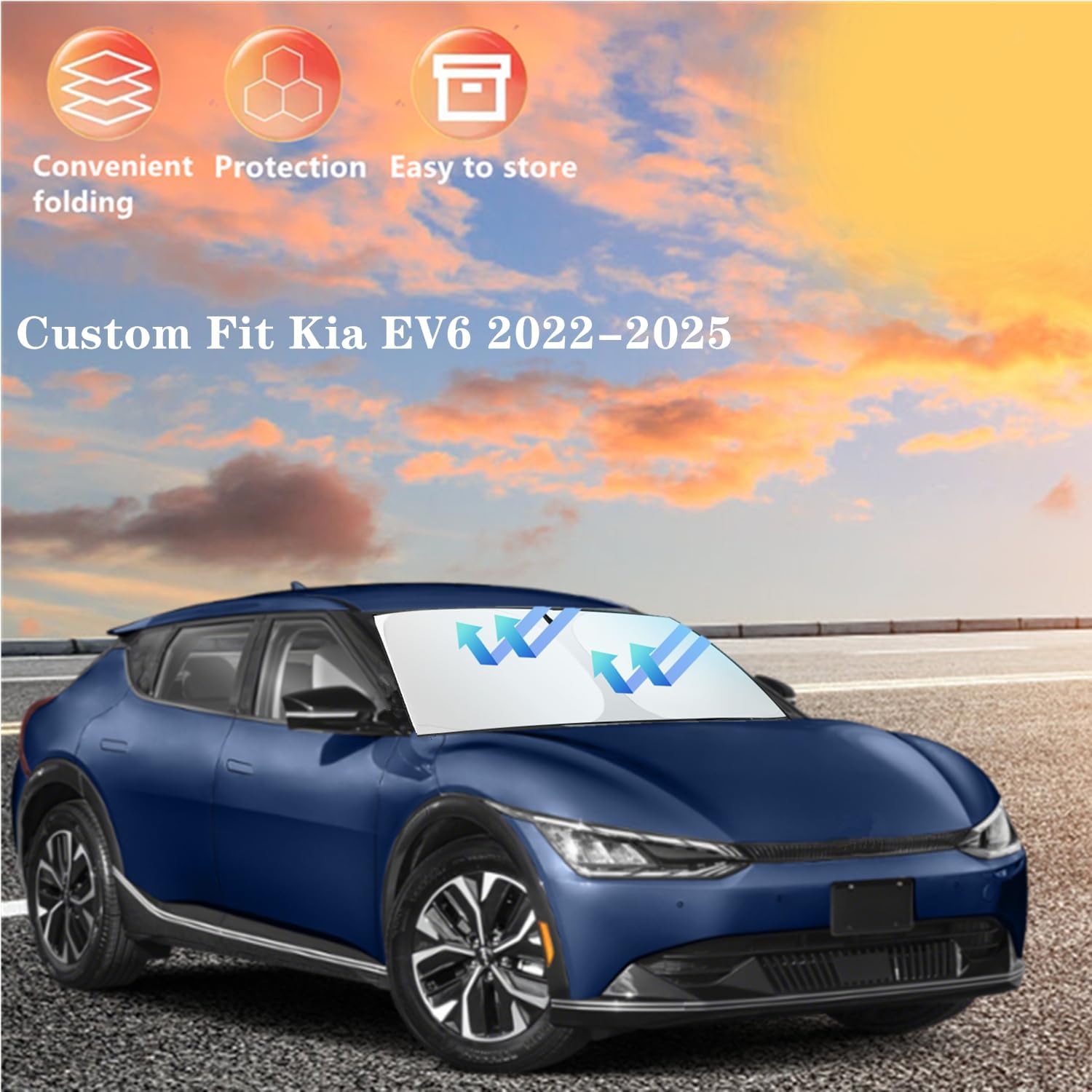 - 【High Quality 】Custom for Kia EV6 2022-2025 of high-quality 240T material fabric that blocks and reflects heat, harmful UV rays, and sunlight while being less prone to wrinkling. Reinforced steel bezel provides better durability, ensuring a longer and safer life.