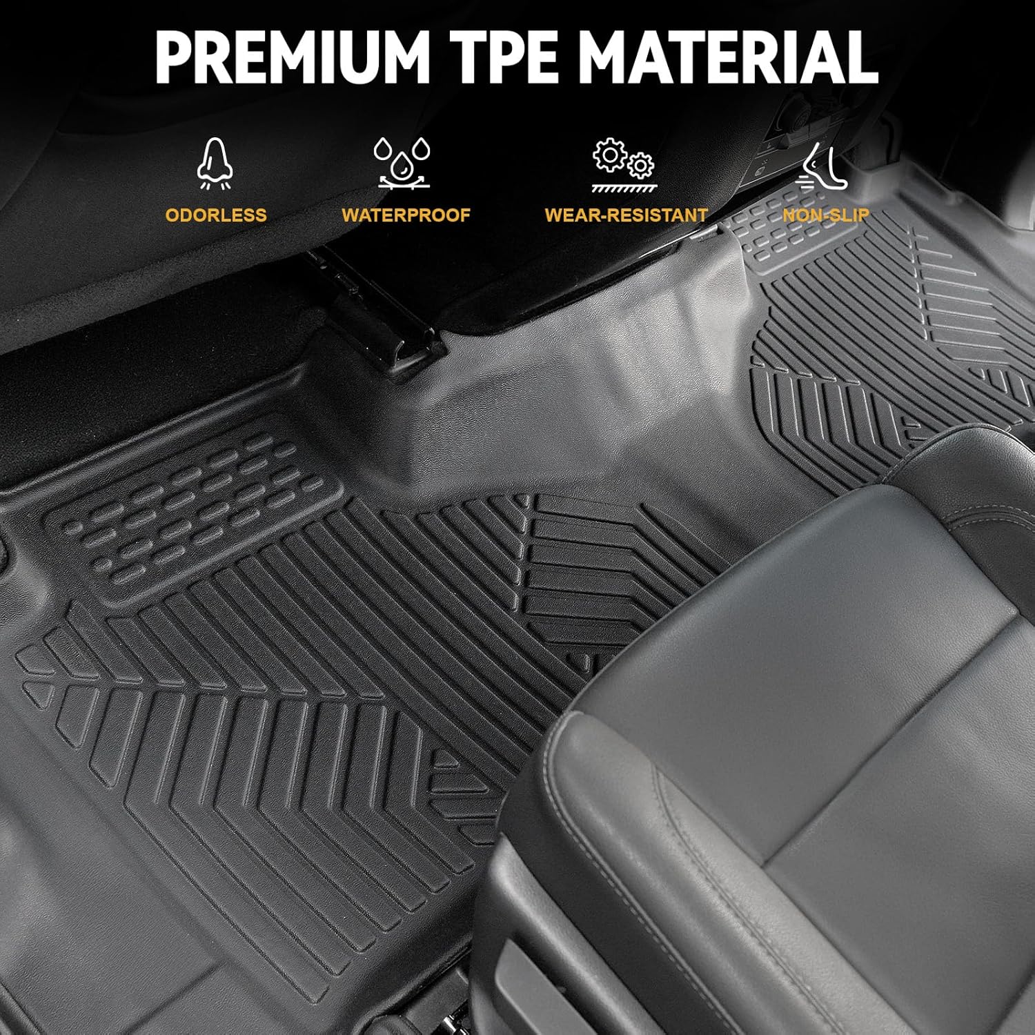 - Custom Fitment: Precisely engineered with 3D laser scanning for 2021 2022 2023 2024 2025 Chevy Tahoe / GMC Yukon with 7-passenger seating (2nd-row Captain's Chairs). Not fit Yukon XL/Suburban. Includes floor mats, cargo liner, 3rd row seat back protectors, 2PCS inter and 4PCS outer door sill guards – 40% more components than standard sets