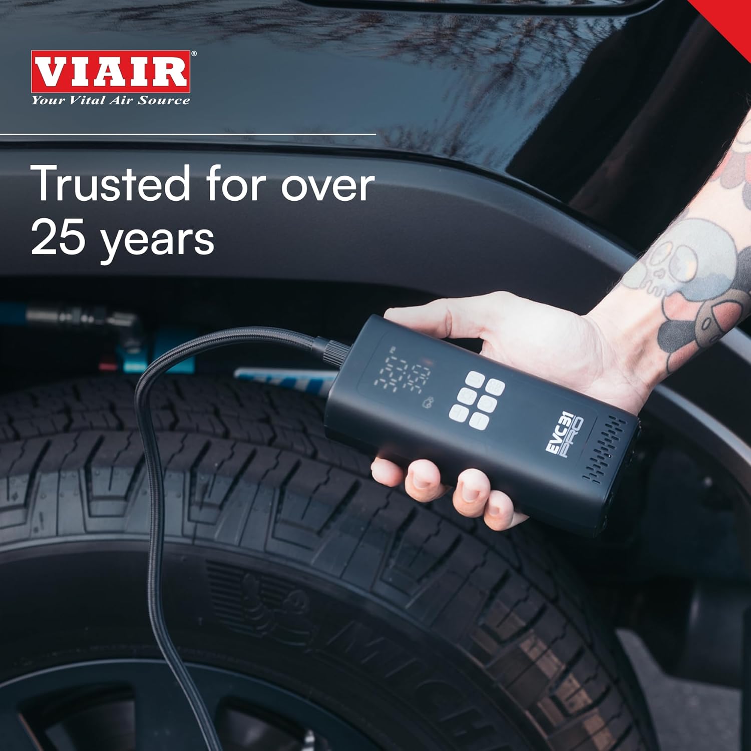 Viair Every Vehicle Carry EVC31 PRO - rechargeable, portable air compressor, dual power source, LED gauge w/preset - Tire Inflator Ideal for LT truck & suv's, cars, motorcycles, & E-bikes